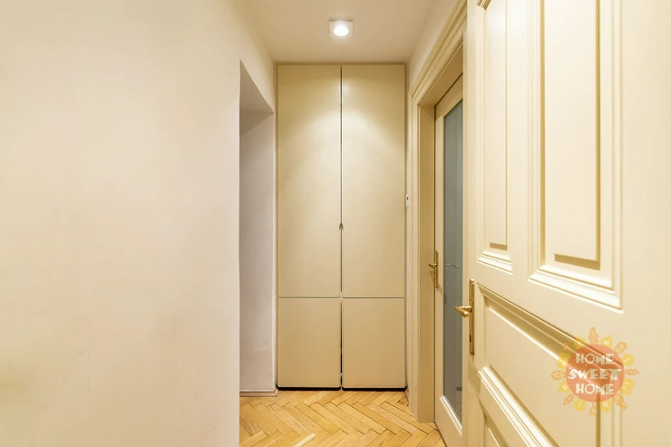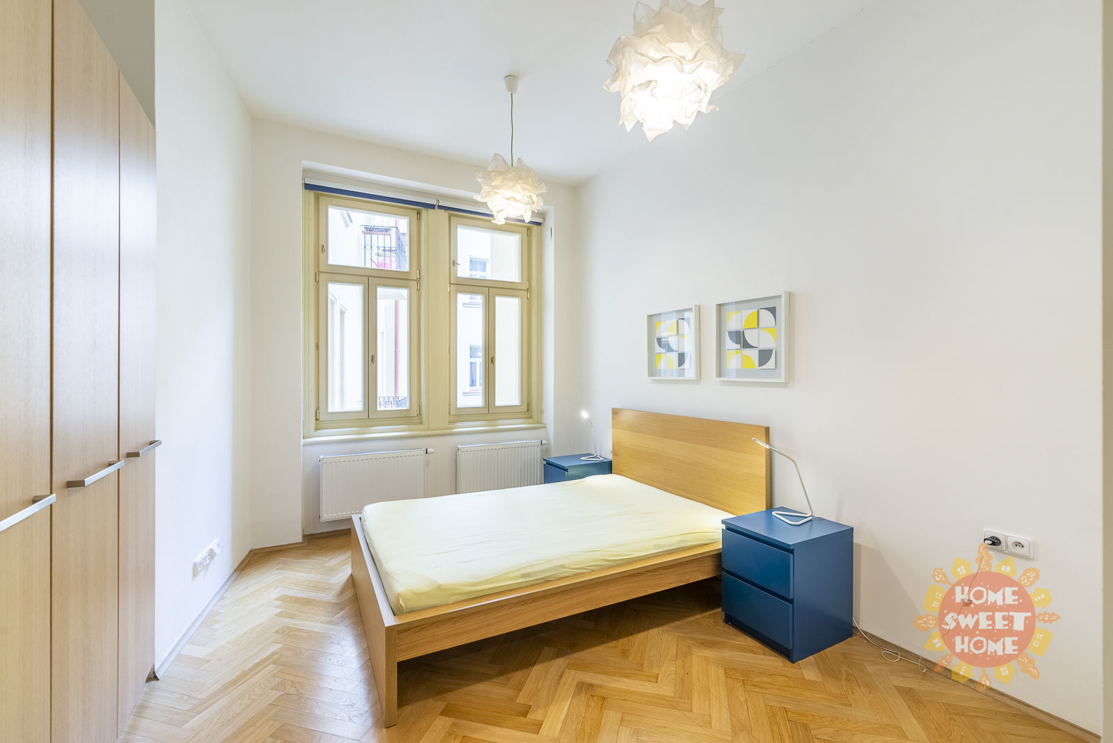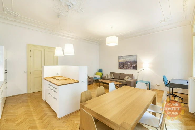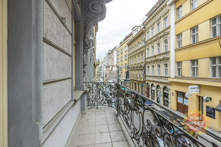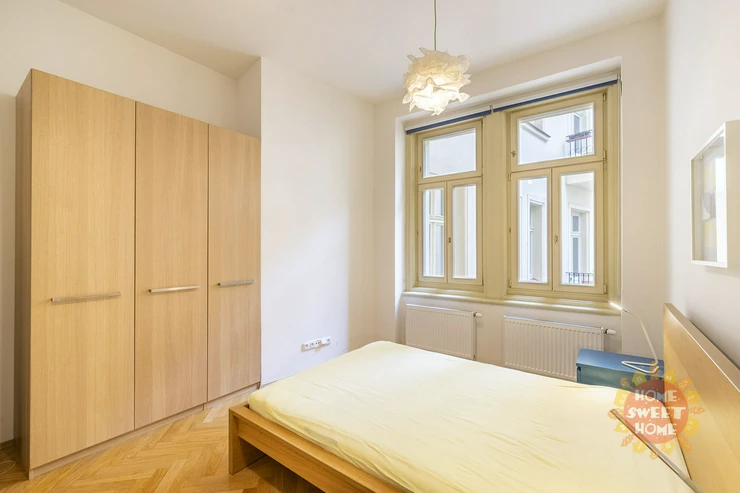 Parquet floors, tiles in the bathrooms, gas heating. The modernly equipped apartment has preserved the atmosphere of the center of Prague, which is provided by, for example, the historic, high ceiling, or the windows typical of the center of Prague. The living room and one bedroom face the quiet Soukenická Street, and the second bedroom faces the courtyard. Complete civic amenities, OC palladium nearby. Excellent transport links. The apartment is located about a minute's walk from the Dlouhá třída tram stop and not far from the Náměstí Republiky metro station, about 10 minutes and you are on the other side of the river under the Letná park. Cellar available, parking available for a fee. Available immediately.