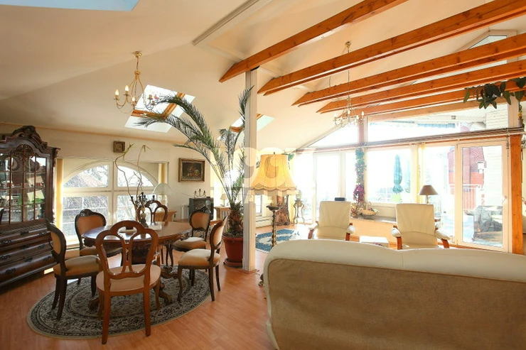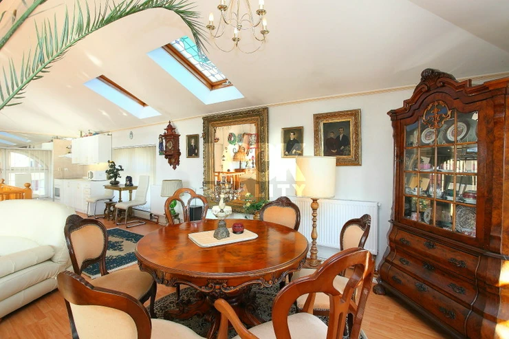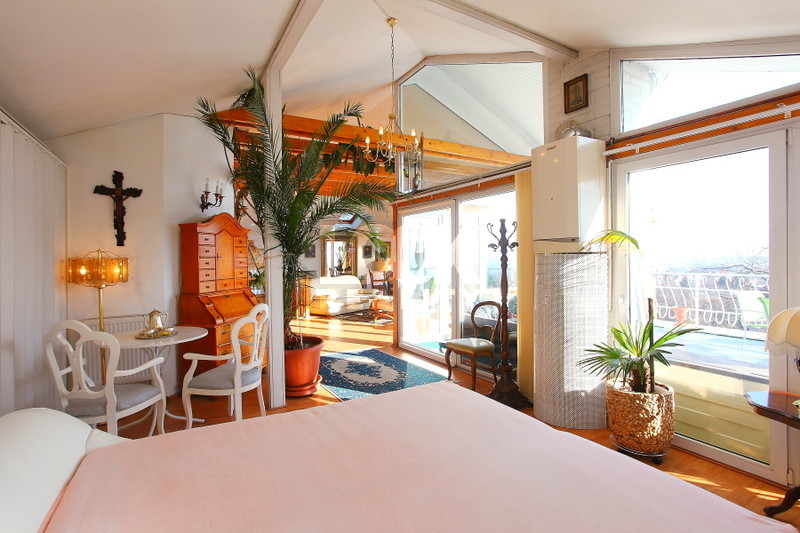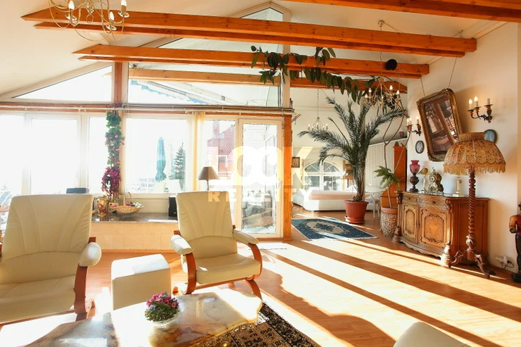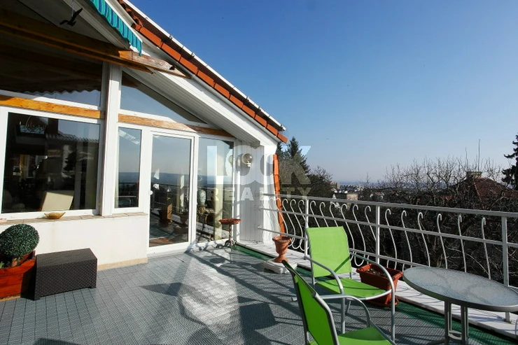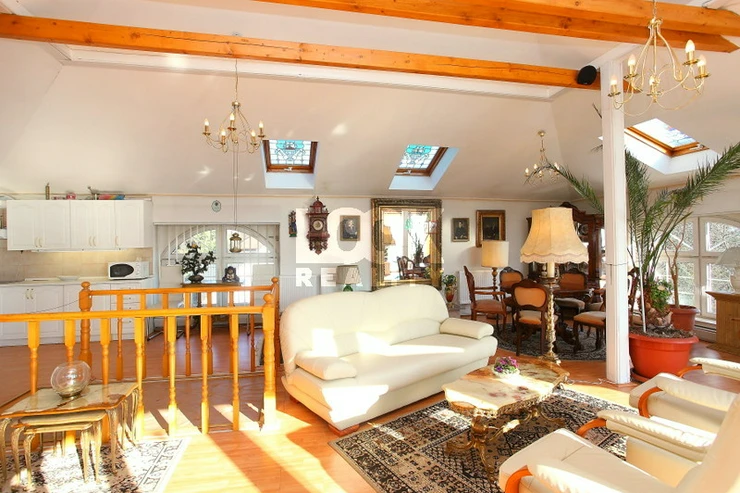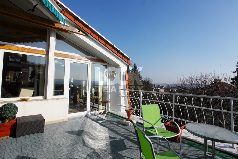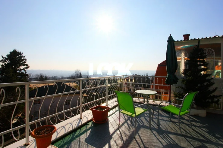 Luxury loft with a terrace and lift to the apartment in Prague 8. We offer for rent beautiful loft 1+kk, 150 m2, which is situated over the entire floor luxury villas in the attic with special access through a new lift (wheelchair operation). Lift goes directly to the apartment. The apartment has a beautiful terrace including furniture (baroque castle type with light fine) with beautiful view of the city. Nice places for summer grilling, sitting with family and friends. Possibility to park on the property. Good transport connection. Near there is bus stop Pisecna. Metro station Kobylisy about 2 minutes by bus. The area offers all the amenities: restaurants, sports facilities, supermarket, pharmacy, library, ATMs, schools, kindergartens. Very luxury loft. Recommended.
