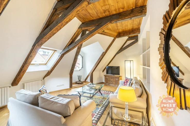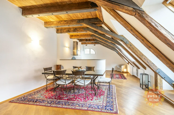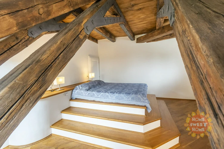 We offer fully furnished, absolutely unique, magical 4+1 apartment, with charming atmosphere, on the third floor of amazingly fetching historic building with an elevator ( it´s own entry to the elevator)).