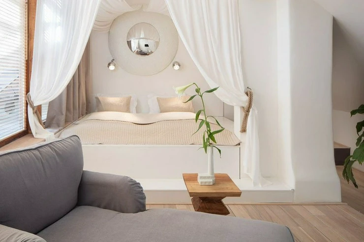 The studio is fully furnished with modern high quality furniture with a double bed, a relaxation area together with a kitchen and dining area and a bathroom.