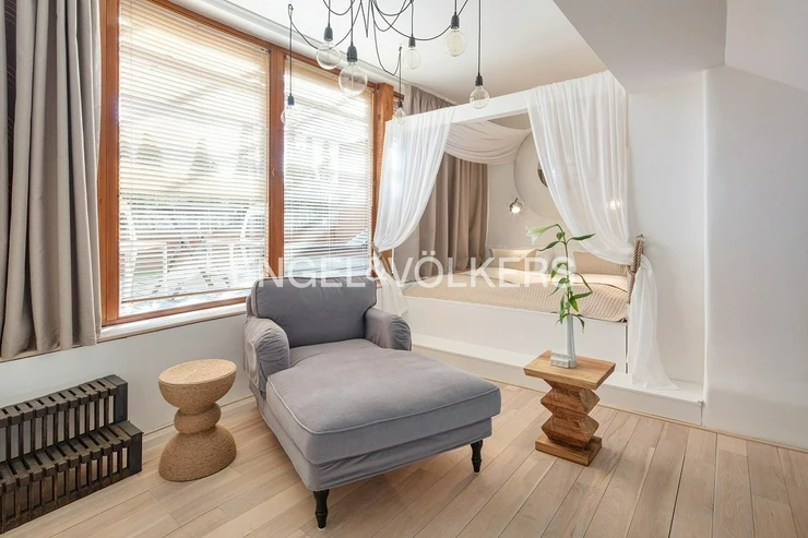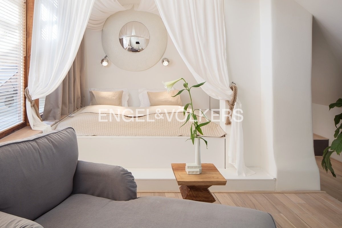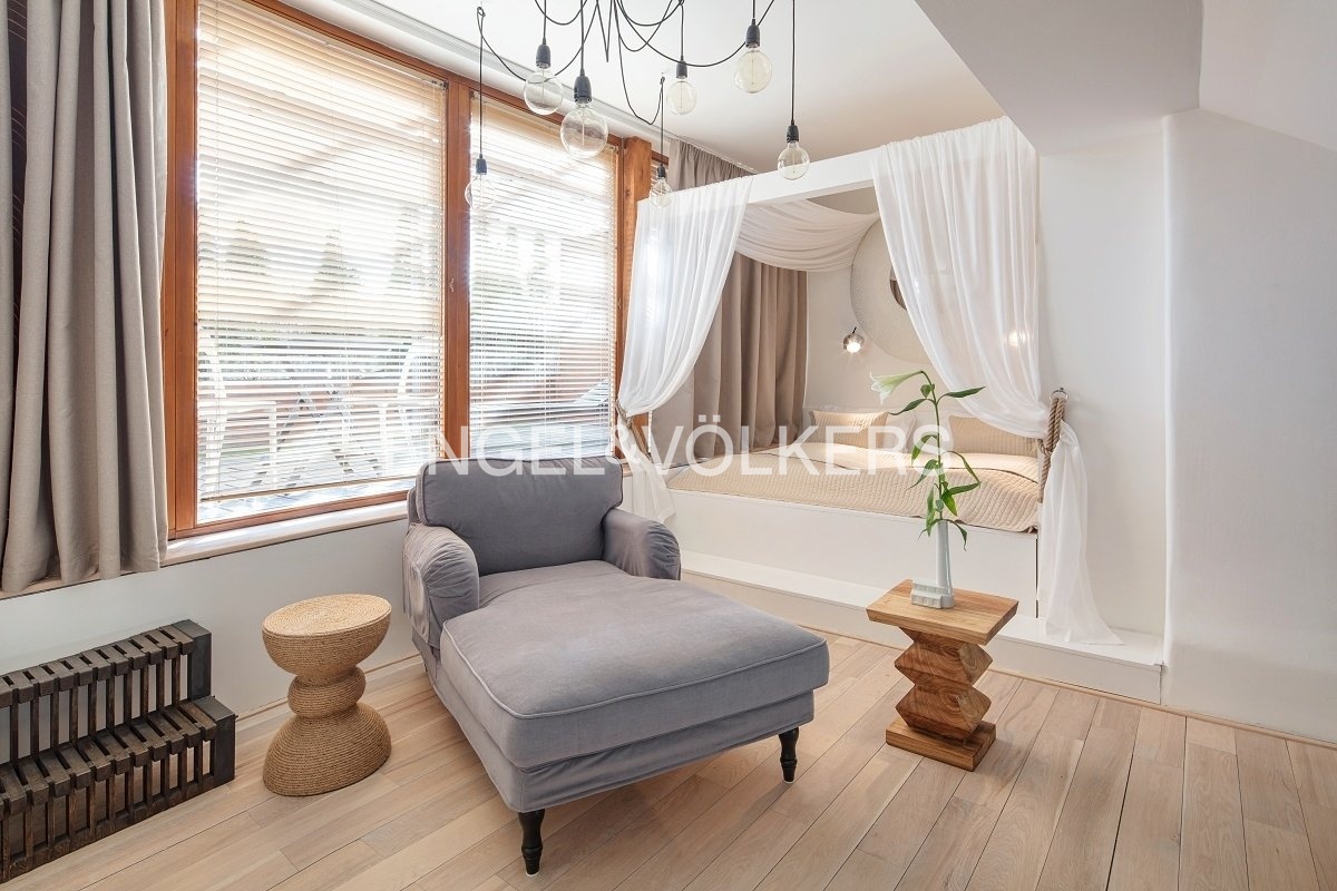 We bring you for rent a cozy bright duplex apartment with 1+1 in an attractive location of Prague Košíř. The apartment is located on the 5th floor of a modern renovated apartment building. The apartment has a separate bedroom with a four-poster bed on the first floor. The living area seamlessly connects to the designer kitchen, which is fully equipped with appliances. The bathroom has a shower. The apartment has a large amount of storage space. The advantage of the apartment is air conditioning. The flooring consists of wooden floating floor and tiles. The building has a reception and 24/7 emergency service. There is weekly cleaning of the apartment units and high speed internet is included in the rent.