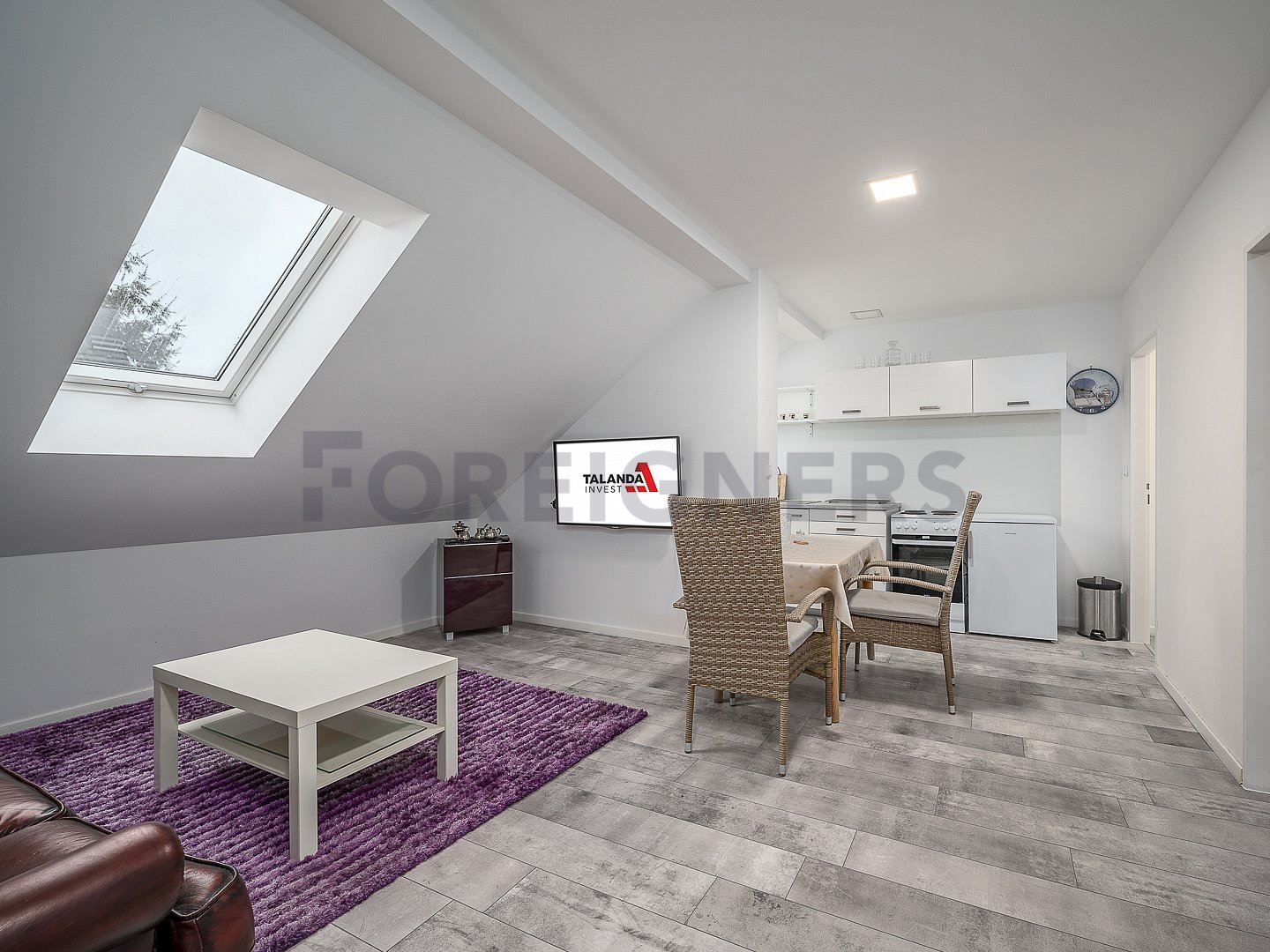 The apartment consists of a kitchen with dining table with a living room, a bedroom, a bathroom with toilet. The apartment is very bright and sunny.