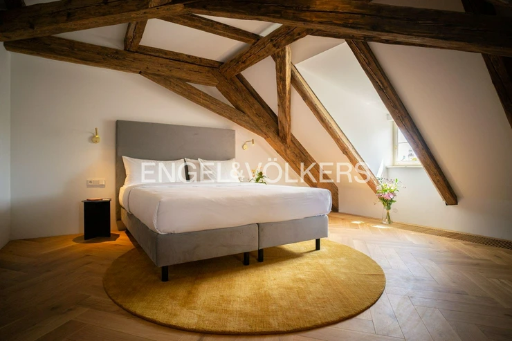 Unique layout with a separate bedroom with built-in wardrobe and en-suite bathroom overlooking the Charles Bridge, generous living room, and kitchen. Bespoke kitchen fully equipped with Miele appliances.