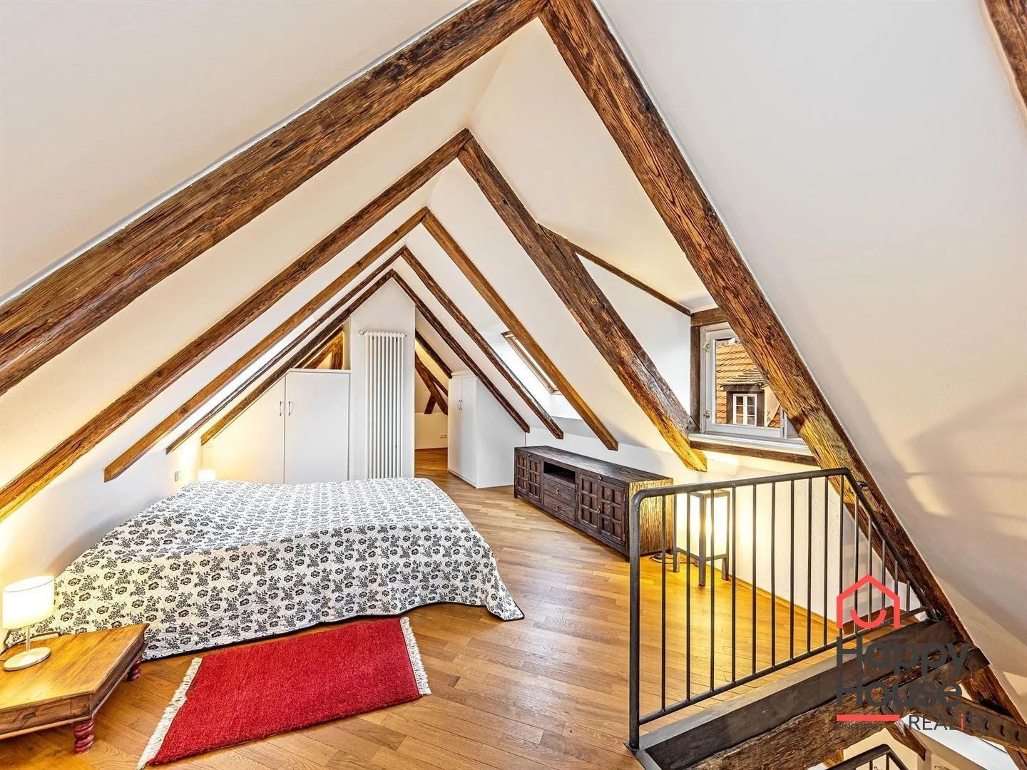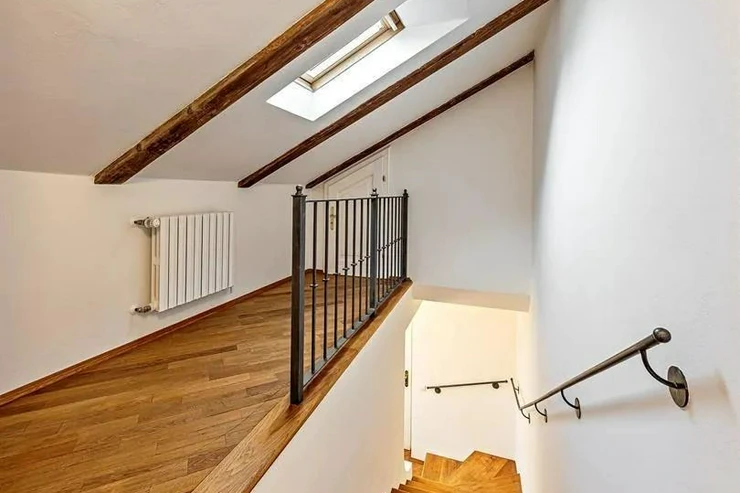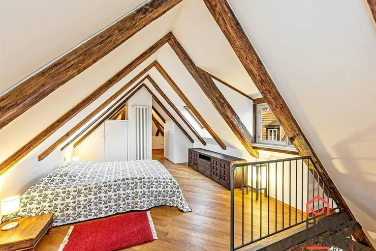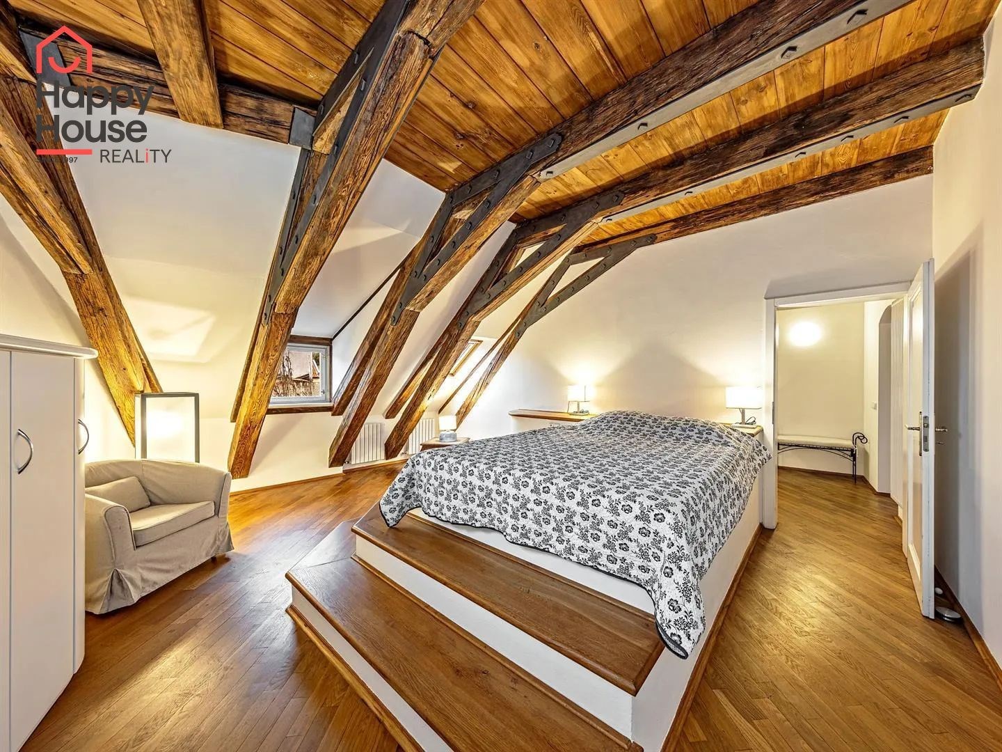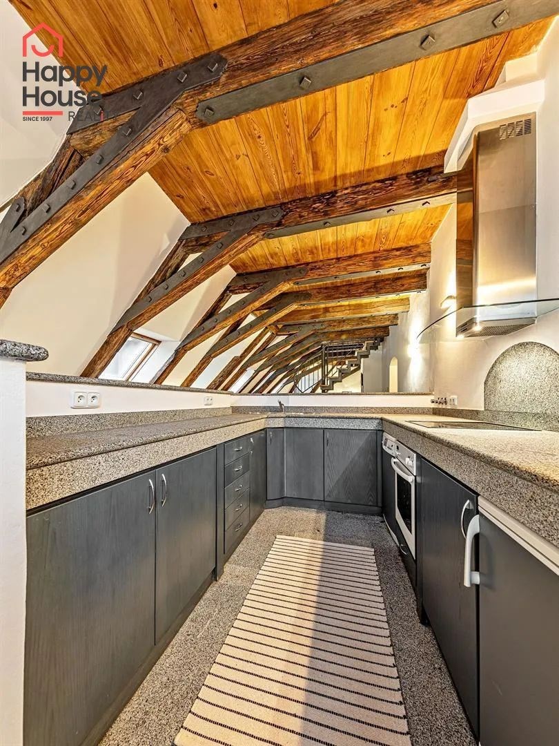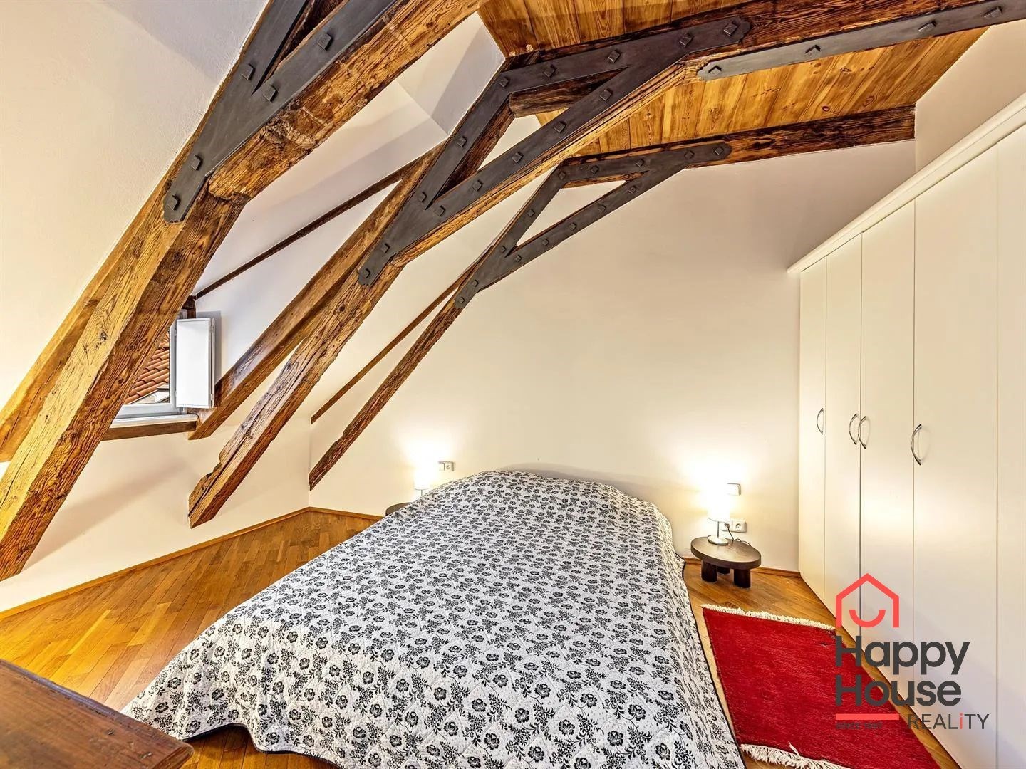 We offer for rent an exceptional, fully furnished duplex apartment 4+1 located on the 3rd and 4th floors of a historic 16th-century building that has undergone a sensitive restoration with a modern elevator (the apartment has its own direct elevator entrance). The building carries the historic name "At the Three Red Hearts" and is among the architectural gems of Mala Strana – it stands out with an atmosphere where history meets modern comfort. Access is through a quiet green courtyard with a fountain and mature trees, creating almost a paradisiacal tranquility in the heart of the city.