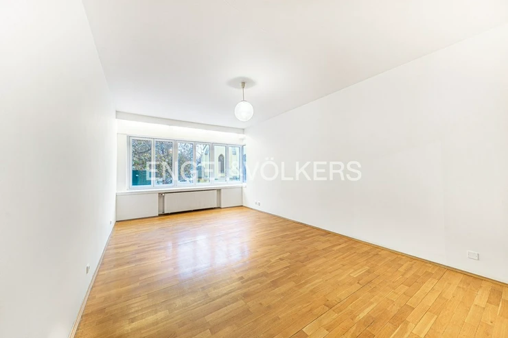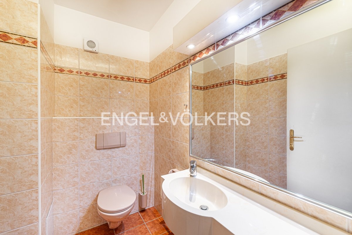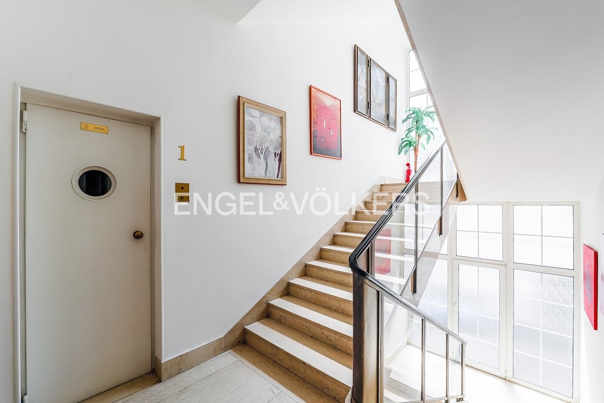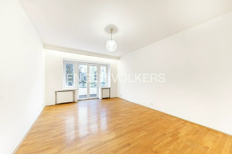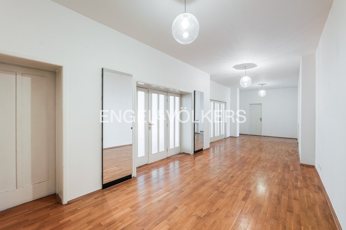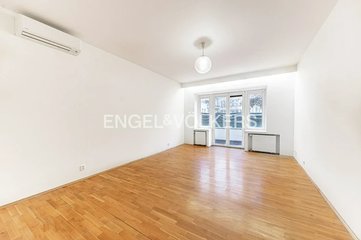 For immediate rent, we offer a generous apartment in a functionalist house in the centre of Prague. The apartment is located on the second floor of the residence with an elevator. It has a good layout. Upon entering, you will be impressed by the large entrance hall from which there is access to all rooms. All three rooms are impassable. There is a fully equipped kitchen including appliances and a washing machine. The apartment also offers two bathrooms, one with a bathtub, the other with a shower and two separate toilets. It is rented unfurnished with furniture. Two of the rooms have an exit to the balcony. The spacious terrace is accessible from the kitchen. The house has a reception and security 24/7. For the tenants of the house, there is a fitness room.