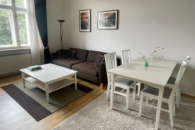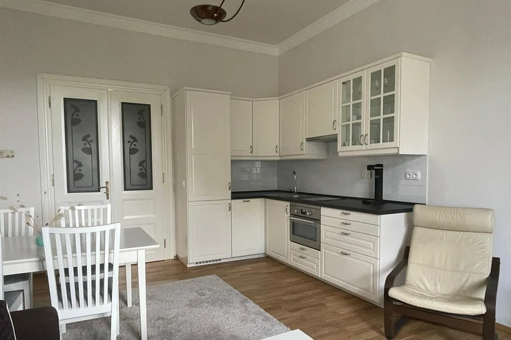 Furnished apartment 2+kk (1 bedroom, 1 bathroom) with a total living area of 48m2, is situated on the 3rd floor of a well-maintained building with an elevator on Dřevná Street, Prague 2 - Nové Město.