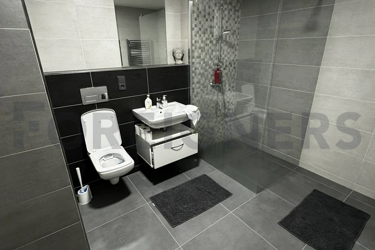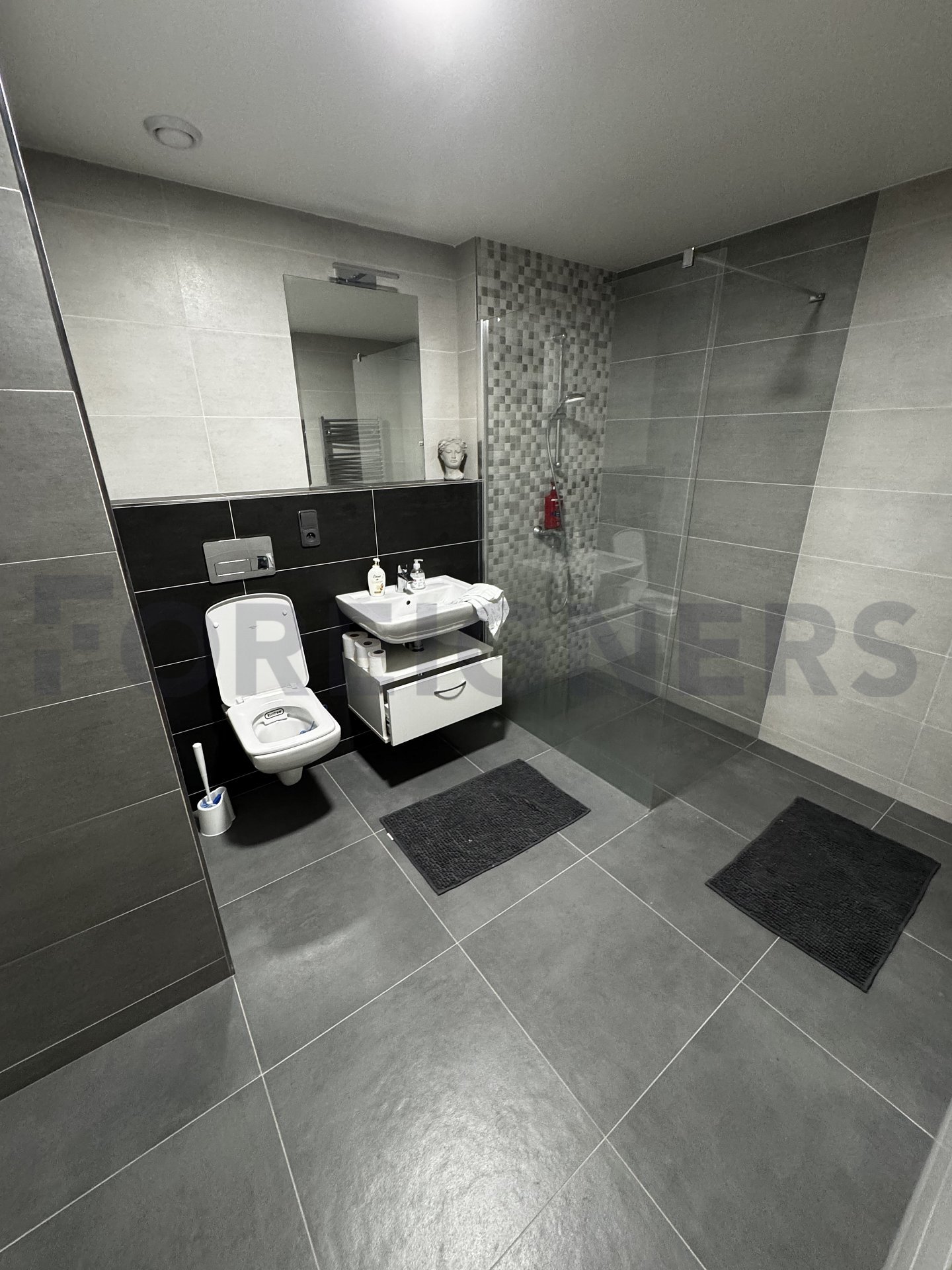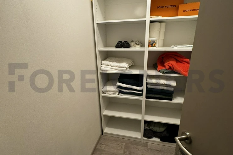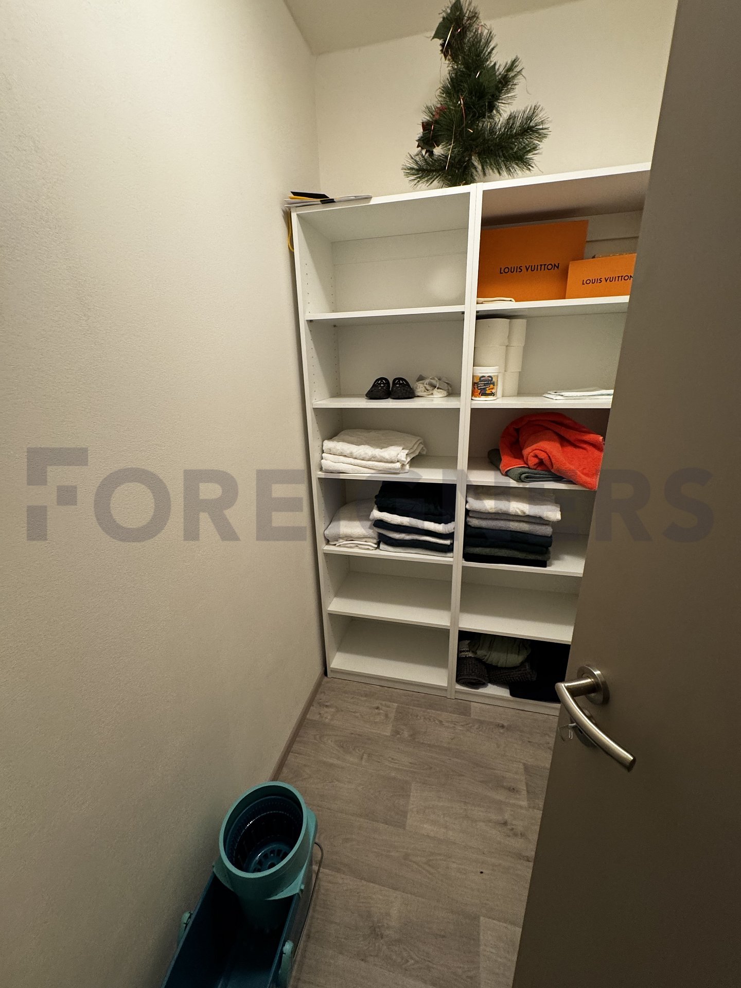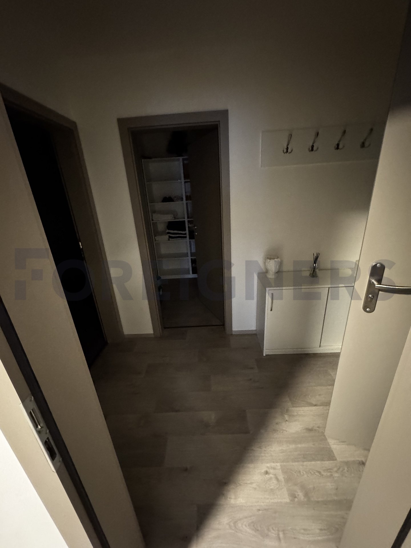 This is 2-bedroom apartment. After entering the apartment, you will walk through the entrance hall, on the right hand side there is a dressing room/storage, in front of you will enter to the bathroom.