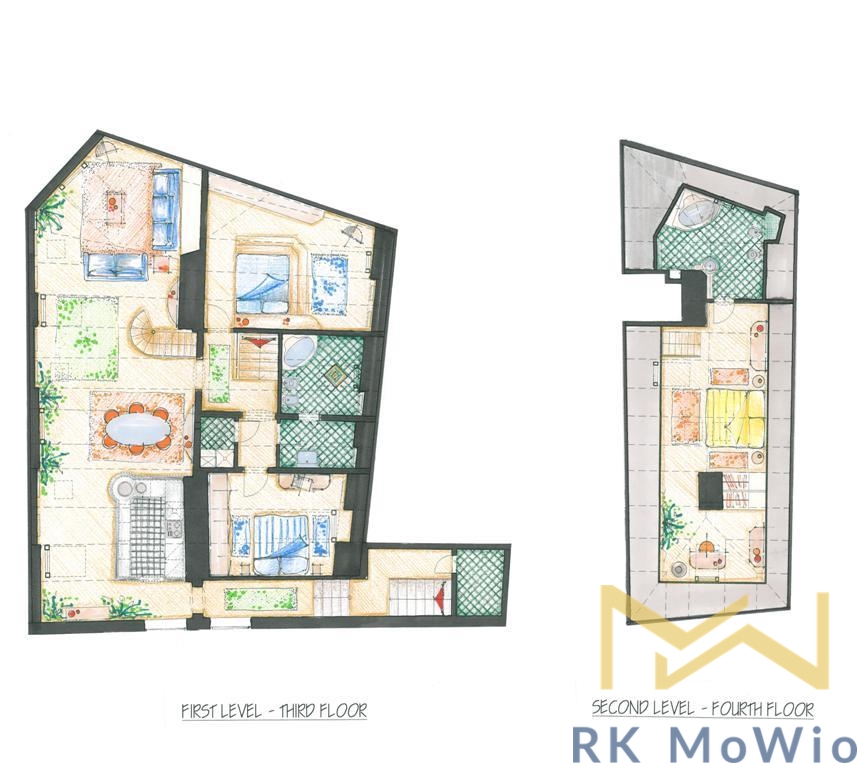 We offer for rent a furnished, loft-style, duplex apartment No. V5-P with a layout of 3 bedrooms and a floor area of 221 sqm. This unique property features exposed wooden beams and is located on the 3rd floor (4th above ground level) of a renovated historic building without an elevator on Vlašská Street in Praha 1 – Malá Strana.