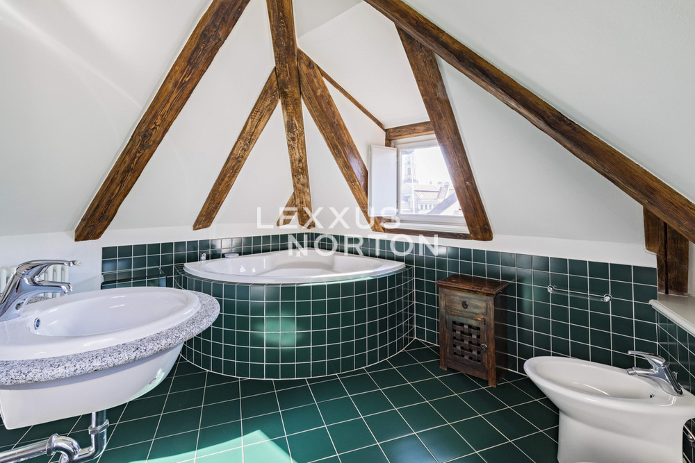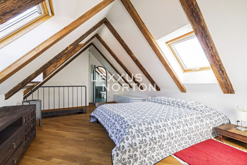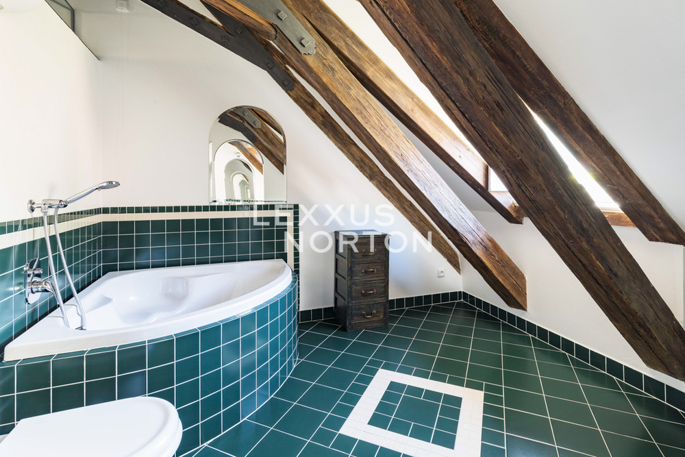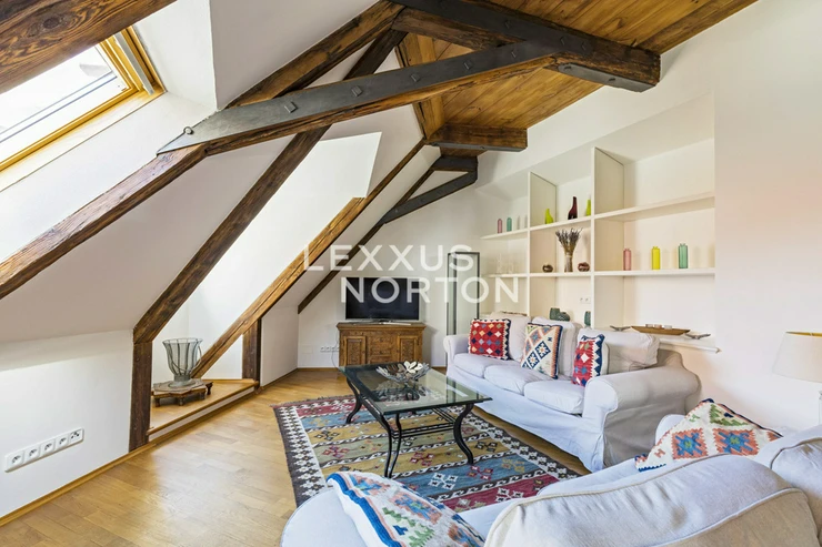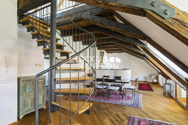 We offer a stylishly furnished 3 bedroom apartment for rent of 221 sqm, on the 2nd floor of a building with elevator. The property is located in a beautiful area of Prague 1 - Mala Strana with all civic amenities and good transport infrastructure This loft duplex apartment offers for use in the lower part a living room together with a fully equipped kitchenette and dining area, 2 bedrooms and a bathroom (corner bath, toilet and bidet). The upper part of the apartment offers a gallery suitable for use as a study/bedroom and a bathroom (corner bath, toilet and bidet).The apartment is equipped with its own elevator entrance and the rustic interior of the apartment is perfectly complemented by the solid wood beams, wardrobes, sofa set, bed, dining set, coffee table, TV, and kitchen appliances. There are trams, buses and the Malostranska metro station. Within walking distance are shops, restaurants, cafes, hospitals, pharmacies, theatres and a post office. Nearby are Prague Castle, Charles Bridge, Kampa, Certovka, romantic streets. For leisure activities, you can use the sports facilities or the cable car to Petřín. You can go for a walk to Kinsky, Lobkovicka, Valdstejnska, Vrtbovska gardens or to Petrinske, Vojanske or Chotkovske orchards. By car, you can reach the city ring road in 10 minutes, Vaclav Havel Airport in 23 minutes and Novy Smichov Shopping Centre in 5 minutes.The amount of billable monthly deposits is 5 400 CZK + electricity and gas is transferred to the tenant.The inquiring client agrees to pay a commission of 1 month's rent plus VAT. If you are unable to view the property in person, we also offer you a video tour from the comfort of your home in real time via Messenger, WhatsApp and other communication platforms.