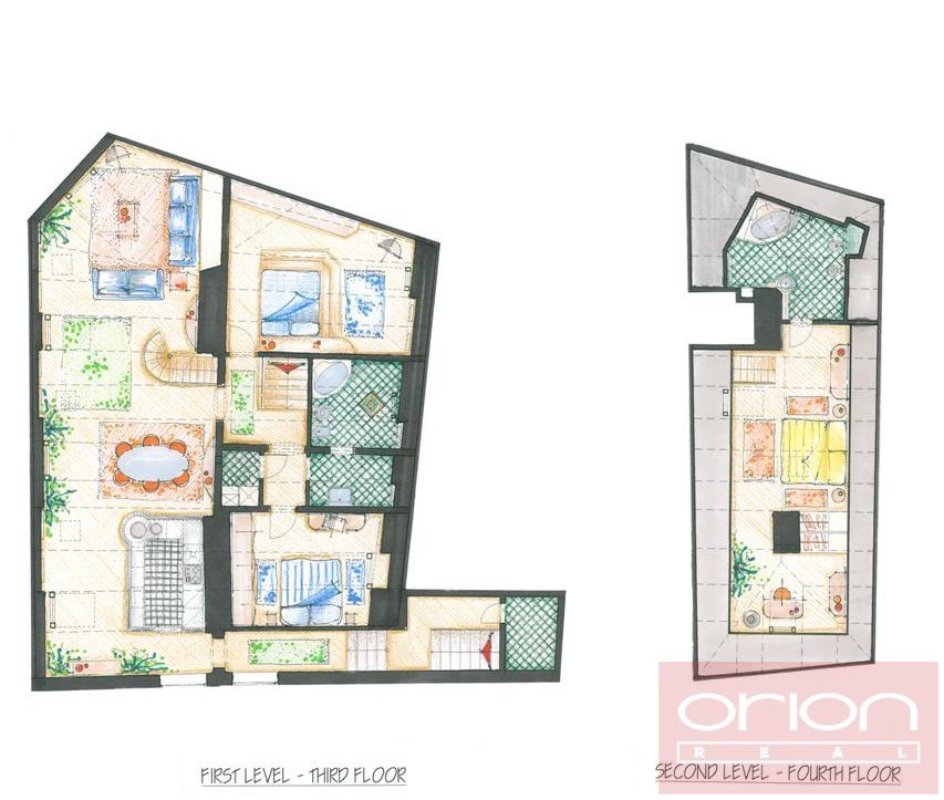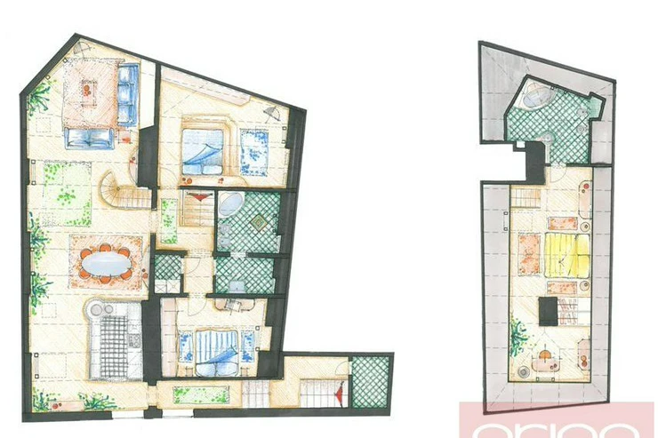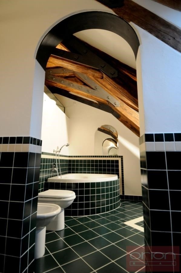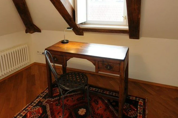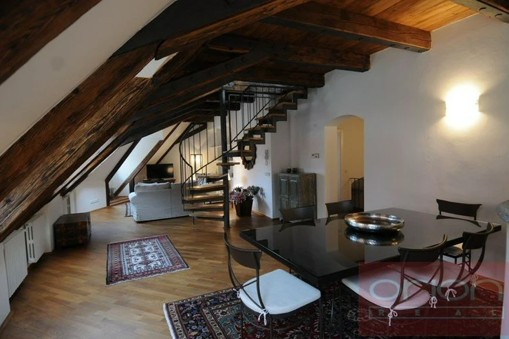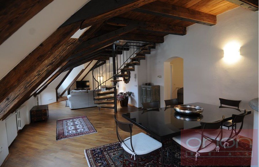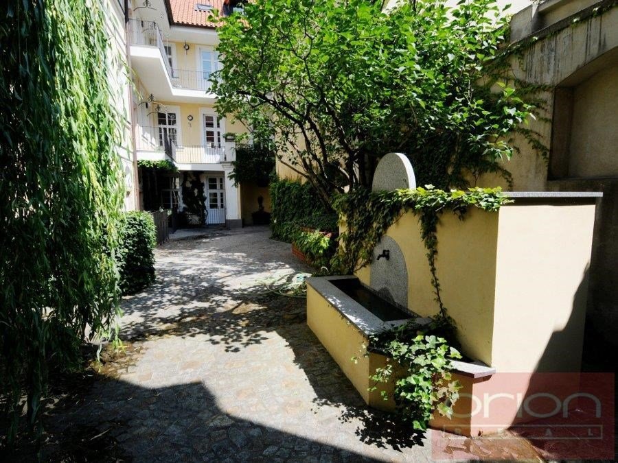 Tastefully furnished 3 bedroom apartment with beautiful views over the Prague Castle and the Petřínské sady park. This duplex apartment is on the 2nd floor of renovated historical building with private courtyard with fontaine. The apartment has total area 221 sqm, comprises entrance hall, fully fitted kitchen, living room with dining area, 3 bedrooms, 2 bathrooms (bath tub, shower), walk -in closet, utility room with washer and dryer. Parquets and tiles floors, built-in wardrobes, gas heating. The apartment is situated right in the heart of Mala Strana with lots of local restaurants, shops, just a few steps from Malostranske namesti, where is a tram stop, Charles Bridge, Prague Castle. Good access to the French School and Parklane International School. Security deposit 3 month' rent.