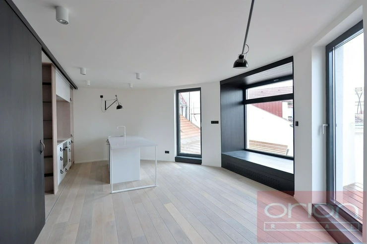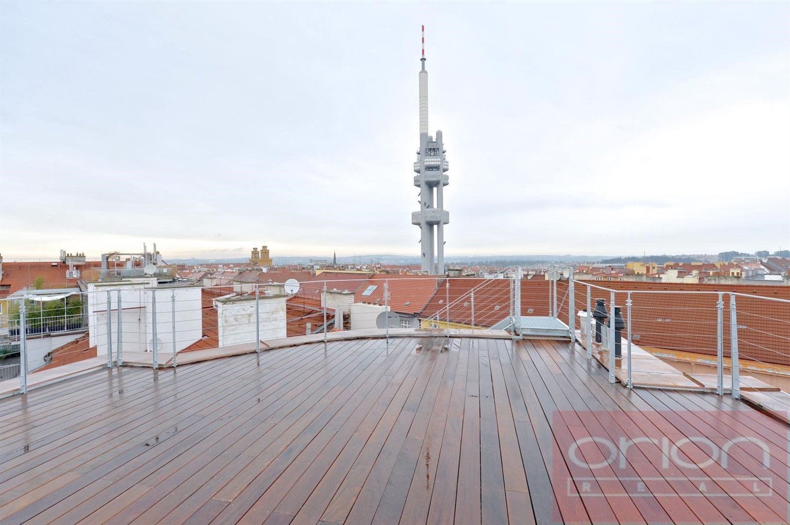 We offer for rent a unique air-conditioned one bedroom apartment with two terraces on the 5th floor of a renovated house with an elevator in the sought-after location of Prague 3 - Vinohrady. The apartment has a total area of 60 sqm and offers an entrance hall, a spacious living room with a fully equipped kitchen, a bedroom, a bathroom, a toilet. The floors are oak parquet and tiles, the apartment is equipped with built-in wardrobes, a wine cellar, a washing machine, a dryer, a security entrance door, a gas boiler. Possibility to furnish the apartment with furniture for a higher rent. Location with all amenities, nearby is the Riegrovy sady park, restaurants, bistros, shops, popular farmers' markets are regularly held on Jiřího z Poděbrad Square. Excellent accessibility by car and public transport, tram and metro stations a few steps from the house. Possibility to rent a parking space for 7,550 CZK incl. VAT/month. Rent 2,033 EUR payable in Euros.