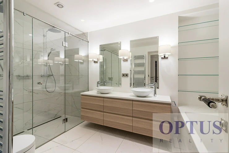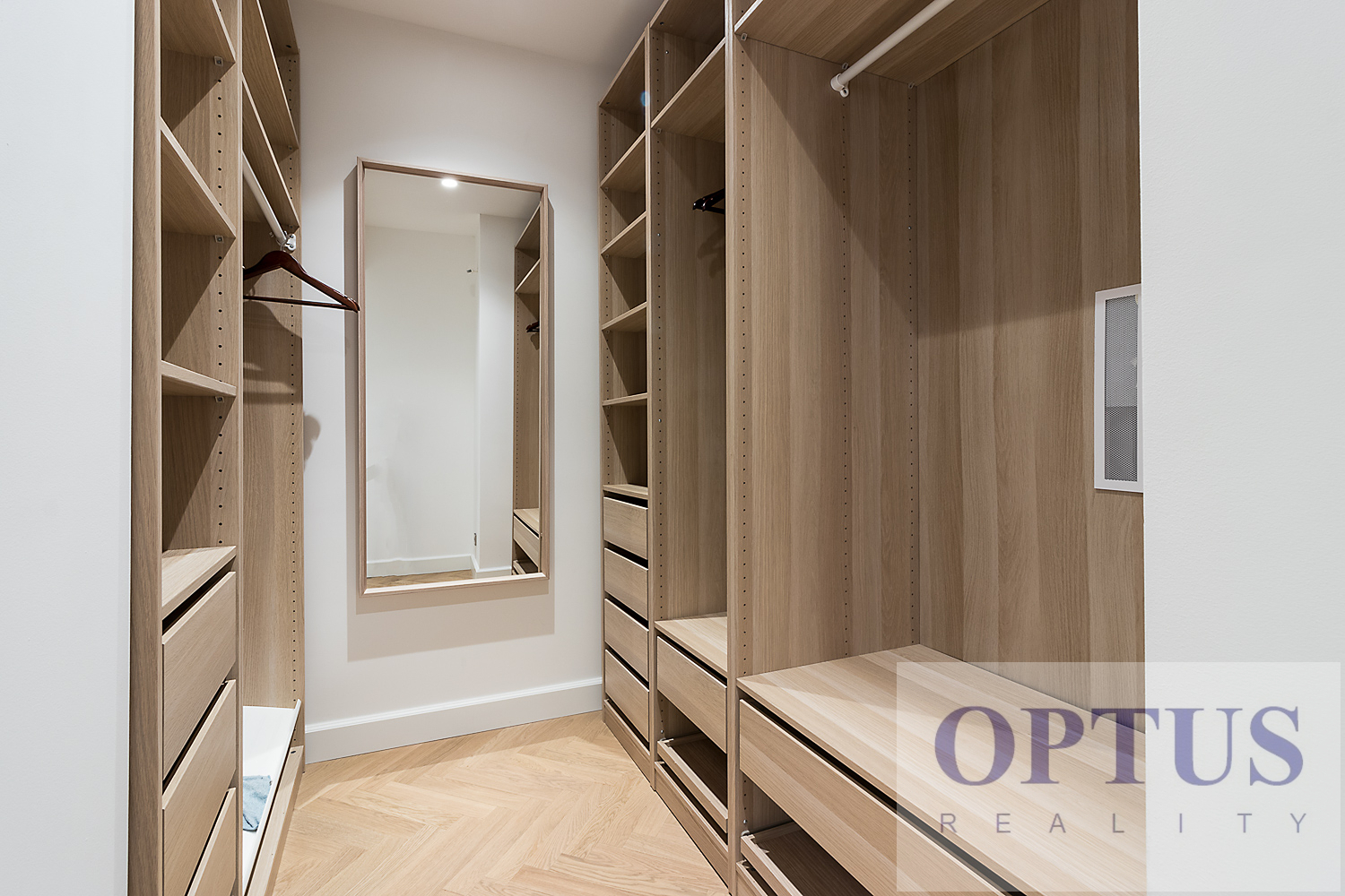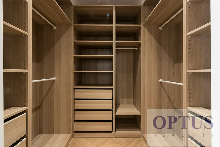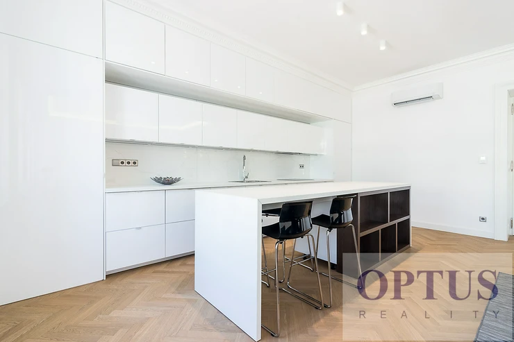 Additional equipment of the apartment: side-by-side fridge, wine fridge, washing machine, dryer, built-in wardrobes, a high speed optical fibre internet connection, air-conditioning (not in the study), oak parquet and tiles; apartment is heated by heat pump.