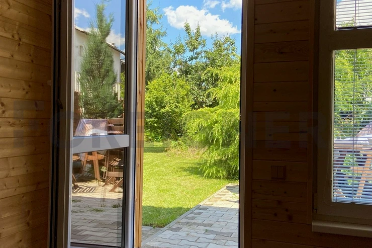 The plastic windows with blinds of the bedroom lead to the west towards the quiet garden, the apartment is bright and sunny.