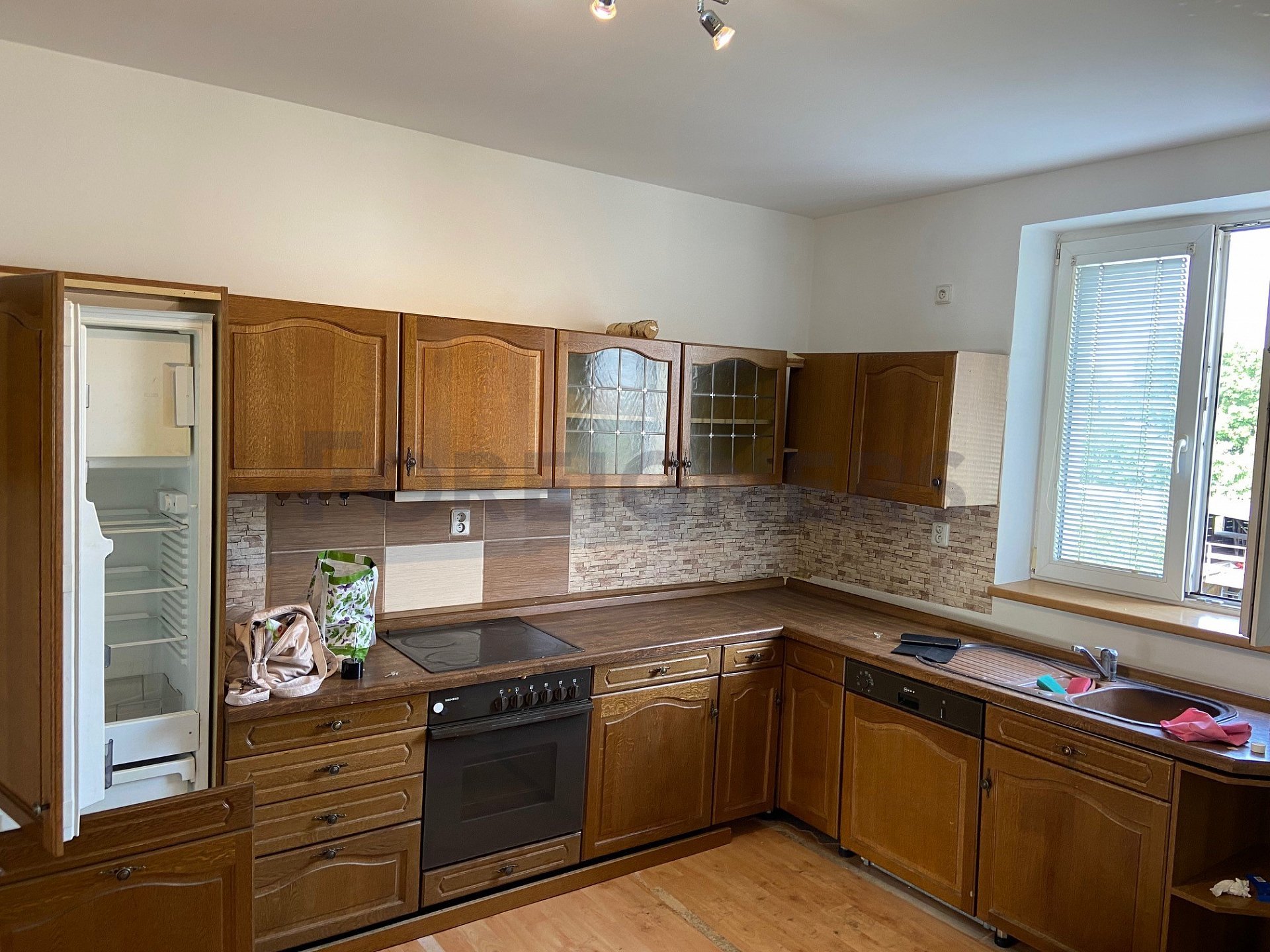 The kitchen has an oven, hob, fridge, freezer, dishwasher. The dining table with chairs is not included in the furnishings. The equipment also includes a washing machine. The bathroom with a bathtub and separated toilet.