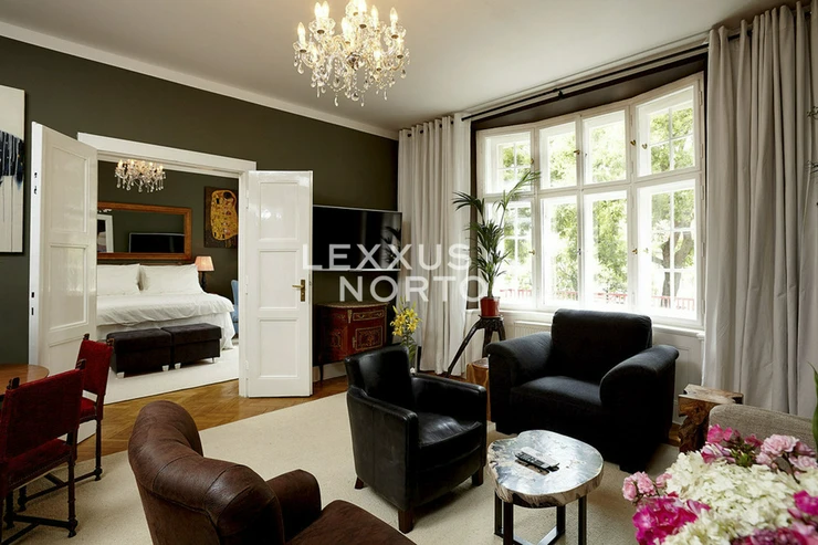 A deluxe, spacious apartment (97 sqm) with view of Vltava river and Vysehrad for rent situated in Prague 2 - New Town. Stylishly furnished two-bedroom apartment on the 1st floor of renovated apartment building offers an entrance hall, a living room, a fully equipped kitchen (with oven, fridge, freezer, dishwasher, ceramic hob, extractor hood), two bedrooms, an elegant bathroom with a bathtub and a separate toilet. The apartment also includes a balcony with view of the Vyšehrad and the Vltava river. The apartment can be rented unfurnished. Possibility of parking in the garage 200 m from the house for 5 000 CZK per month. In the house there is representative lobby.The apartment is fully furnished with a fully equipped kitchen (with oven, refrigerator, freezer, dishwasher, ceramic hob, extractor hood), bathroom with bathtub, washing machine and dryer, two bedrooms with built-in wardrobes, and a living room with a sofa set.This attractive location in New Town offers all civic amenities and excellent transport links. The elegant apartment has a beautiful view of Vltava river and it is located just a few steps from Vysehrad and Stulcovy sady park. Housing with excellent access to international schools (ISP /Prague British School) and Vaclav Havel Airport. Total service charge monthly 4 500,- CZK + electricity and gas.An interested client is aware of the need to pay a commission totalling one month’s rent plus VAT.If you are unable to view the property in person, we also offer you a video tour from the comfort of your home in real time via Skype, Messenger, WhatsApp and other communication platforms.