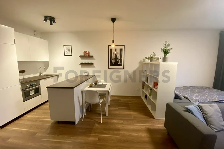This beautiful and tastefuly modern furnished 1-bedroom apartment is perfect for someone who would like to live close to the city center with just few mins distance from walking along the river Labe.