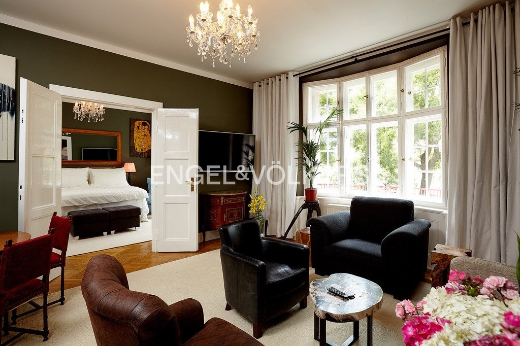We offer you a unique and luxurious 3+1 apartment with an unforgettable view of the Vltava River, Vyšehrad and the adjacent park.