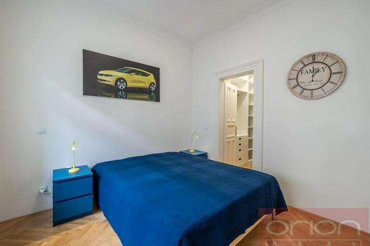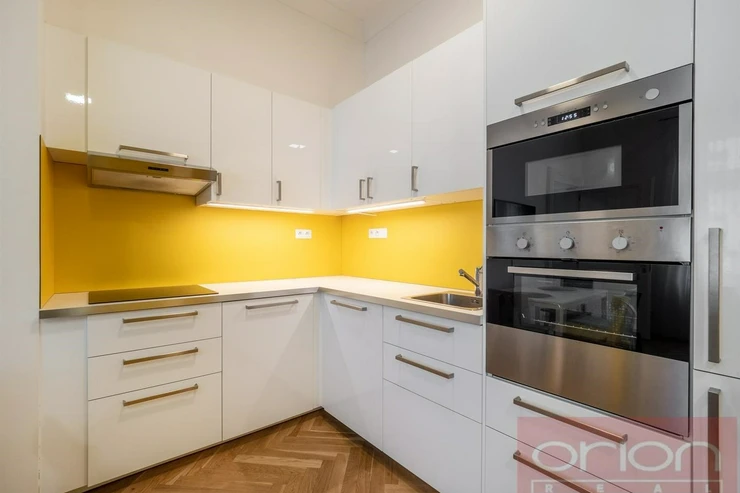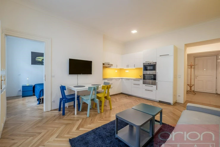 Comfortable, fully furnished one bedroom apartment with area 52 sqm is located on the 2nd floor of a completely reconstructed Art Nouveau apartment building near Stromovka Park in a quiet one-way street on favourite part „Letná“. The apartment consists of an entrance hall, spacious living room with fully fitted kitchen, one bedroom, bathroom with tub and toilet and guest toilet. Cellar belongs to the apartment. The apartment is furnished with modern furniture. The floors are quality parquets and tiles. Security doors, wooden windows. Heating is provided by a central boiler room in the house. The perfect location in close proximity to the beautiful large Stromovka Park and Letenské sady Park. There are all civic amenities that will satisfy even the most demanding clients - shops, restaurants, cafes, supermarkets, schools, kindergartens, high school, post office, pharmacy etc. Great transport accessibility - near the tram station Letenské náměstí or 5 minutes to the metro station C Vltavská or metro A Hradčanská. Parking in residential blue zones, or renting a place at the National Museum of Agriculture in Kostelní street.