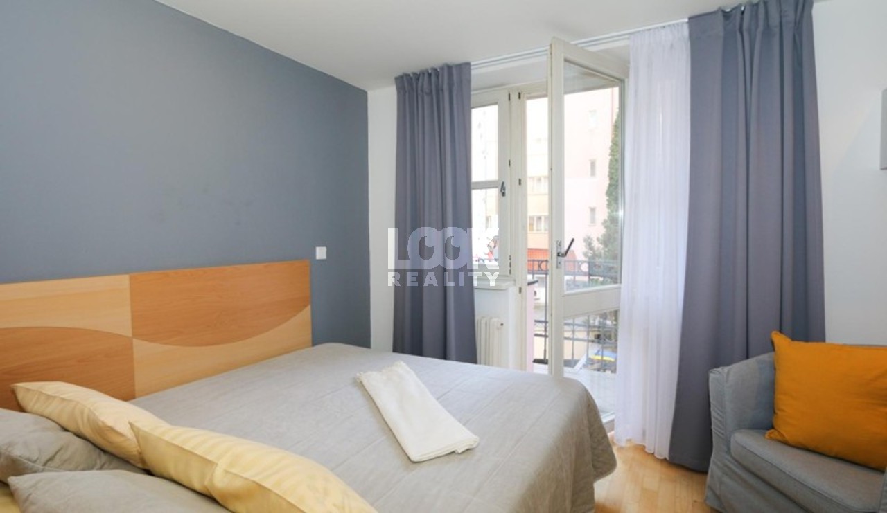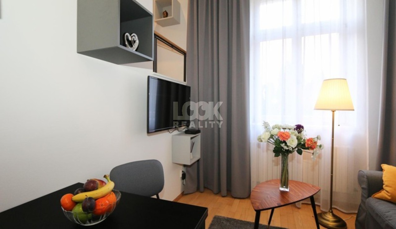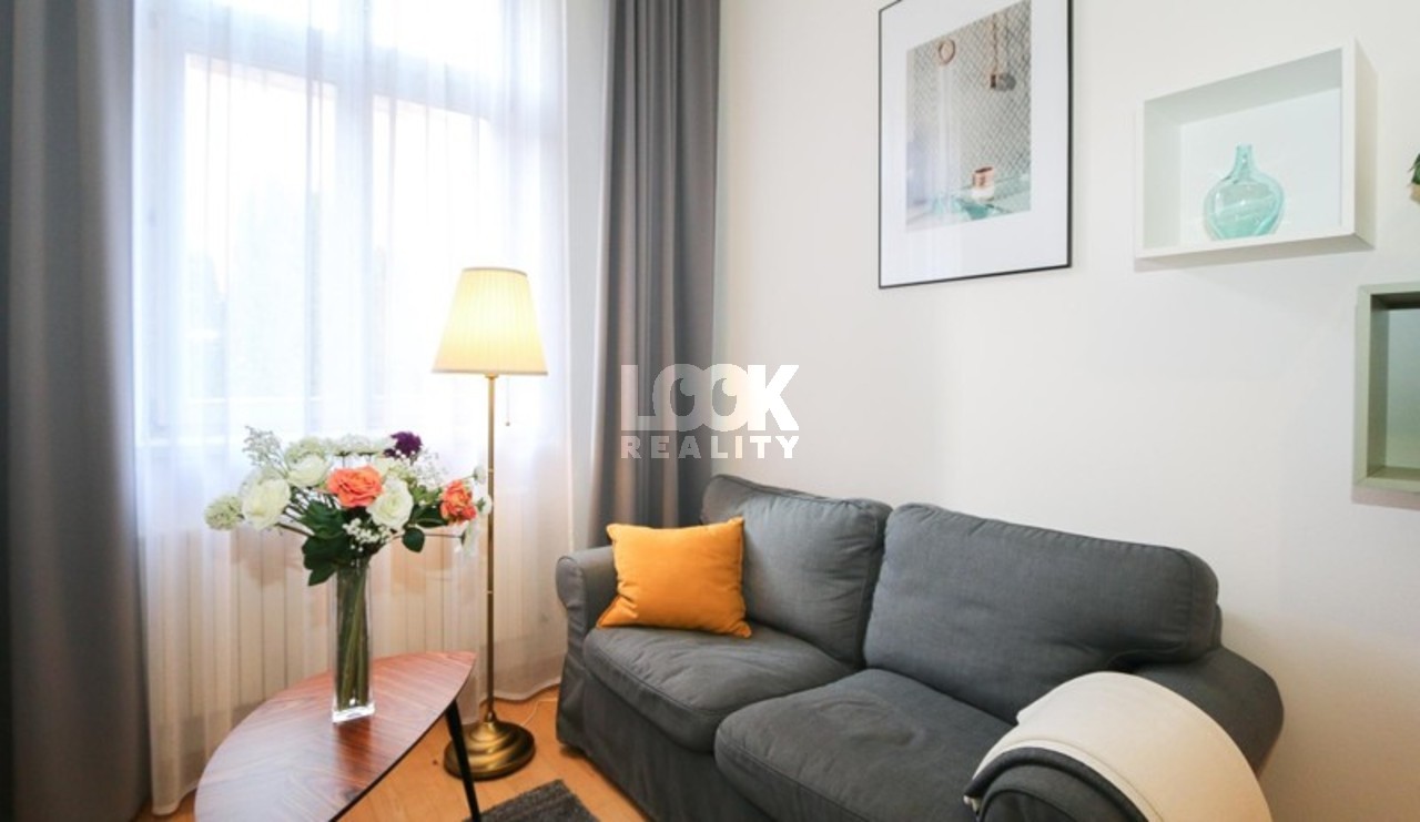 Nice apartment in Prague 2 - Vinohrady with balcony, near park Grebovka. We offer to rent the nice apartment 2+kk of 34 m2. The apartment is located on the upper ground floor with elevator in Belgicka street. The apartment is fully furnished: sofa, coffee table, dining table with chairs. The kitchen is fully equipped with all appliances: hob, oven, hood, fridge, microwave, kettle. The bedroom is located on the upper floor with access to the balcony. The bedroom has a double bed. In the flat there is a TV and internet access available. Near the apartment is a tram stop Zvonarka and metro station Namesti Miru. All civic amenities: restaurants, schools, shop, libraries, theaters, pharmacy, post office, sports facilities. There are also parks - Havlickovy Sady, Bezrucovy Sady, ideal places for walking, relaxation, or sports. Very pleasant living in a beautiful location. The price for short term rental could be changed. Available from May 2025.
