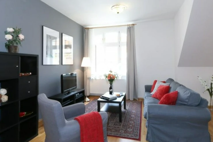 Nice bright apartment in Prague 2 - Vinohrady, near park Grebovka. We offer to rent the luxury apartment 2+kk of 70 m2. The apartment is located on the 4th floor of the building with elevator in the street Na Kozacce. The apartment is fully furnished: sofa, coffee table, dining table with chairs, wardrobes and chest of drawers, bed, bedside tables, lamps. The kitchen is fully equipped with all appliances: hob, oven, hood, fridge, dishwasher, microwave, toaster, coffee maker, kettle. There is shower, washing machine and toilet in the bathroom. In the flat there is a TV, DVD player and internet access available. Excellent transport accessibility. Near the apartment is a tram stop Jana Masaryka and metro station Namesti Miru. All civic amenities: restaurants, schools, shop, libraries, theaters, pharmacy, post office, sports facilities. There are also parks in the vicinity - Havlickovy sady, Bezrucovy sady, ideal places for walks, relaxation or sports. Very pleasant living in a beautiful location.