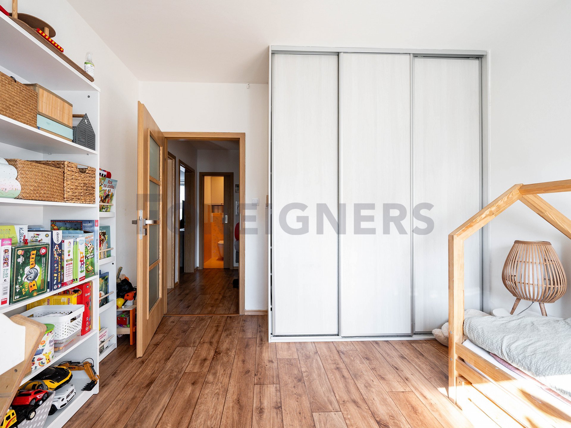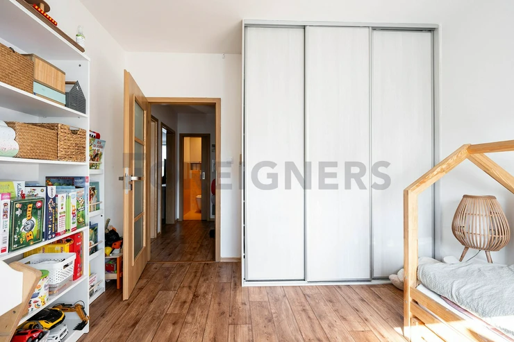 Upon entering the apartment, you'll find a spacious built-in wardrobe, coat rack, and a small dresser on the left. On the right, you'll step into the bathroom, which features both a shower and a bathtub. Next, there is a separate toilet with its own sink. On the left side of the hallway, you’ll find the 1st room, which also comes with a built-in wardrobe. Directly from the hallway, you enter the 2nd bedroom, which also includes a built-in wardrobe. Continuing, you reach the largest room in the apartment – the living room, which seamlessly connects to the kitchen.