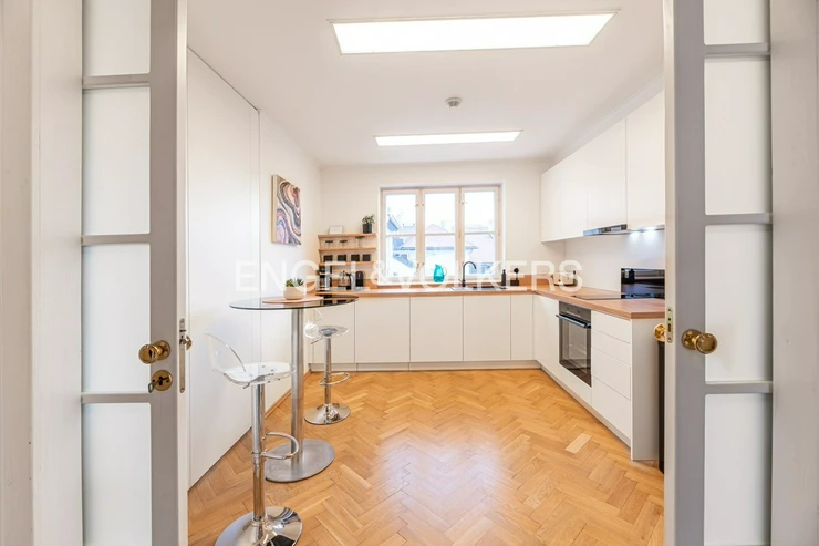 Modern air conditioning in all rooms contributes to the overall comfort. Thanks to the combination of the historical character of the house and modern elements, this apartment offers not only a high standard of living, but also a unique atmosphere in one of the most beautiful parts of Prague.