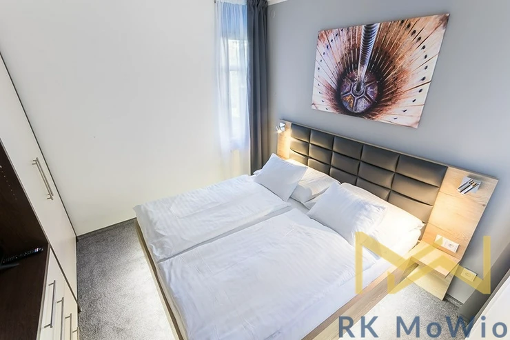 We offer a fully furnished 1-bedroom apartment with a floor area of 44 sqm and a balcony, located on the 3rd floor (4th above-ground level) of a building with an elevator and reception in the residential complex Albertov Rental Apartments, on Horská Street in Praha 2 - Nové Město.