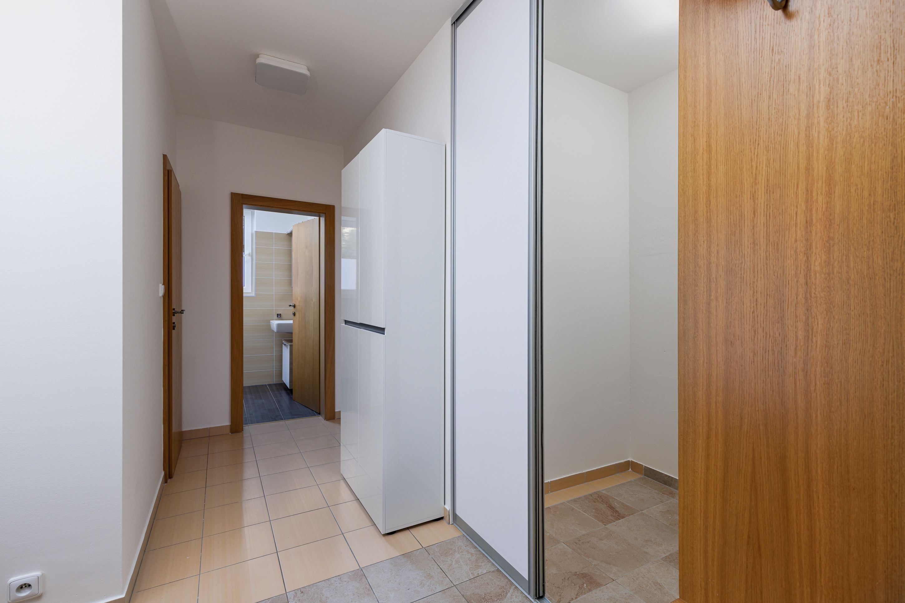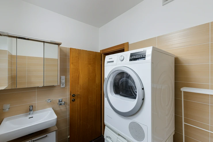 With a 2 bedroom layout, this apartment offers a built-in wardrobe at the entrance in the hallway, and also in the cosy bedroom. The main room will then impress you with an all appliance equipped kitchen, which includes a bar table and chairs as well as plenty of space for a living area. From this room you will enter a very spacious private terrace with a beautiful view. In the bathroom, not only the bathtub is already waiting for you, in which you will be able to relax endlessly, but also the washing machine and dryer. A separate toilet and a pantry are a matter of course.