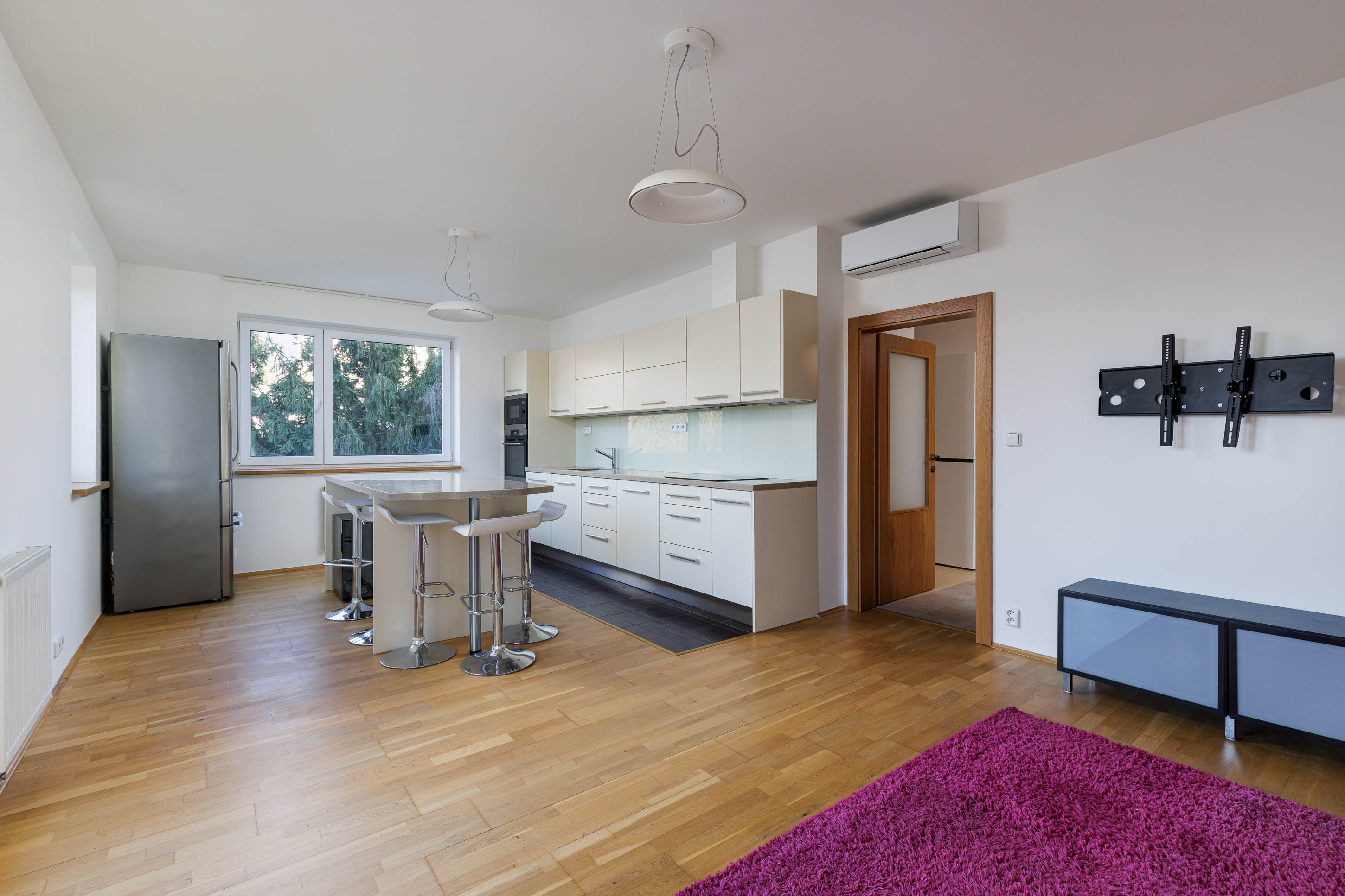 Are you looking for a new place to live in a quiet part of Prague and yet within easy reach of the city centre? Then this modern apartment with its own parking space and beautiful views in the popular area of Smichov, where you will have shops, restaurants and cafes within walking distance, will surely attract you.