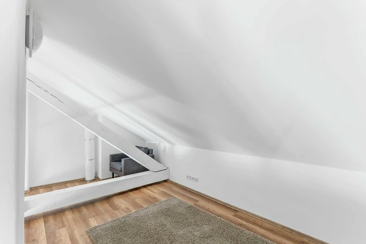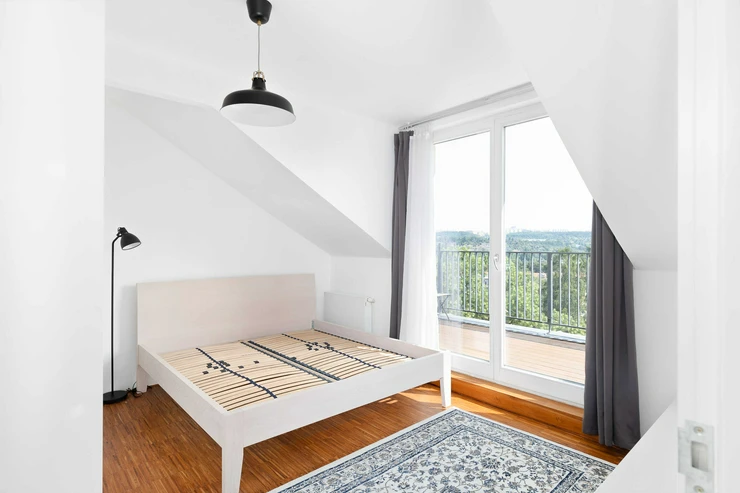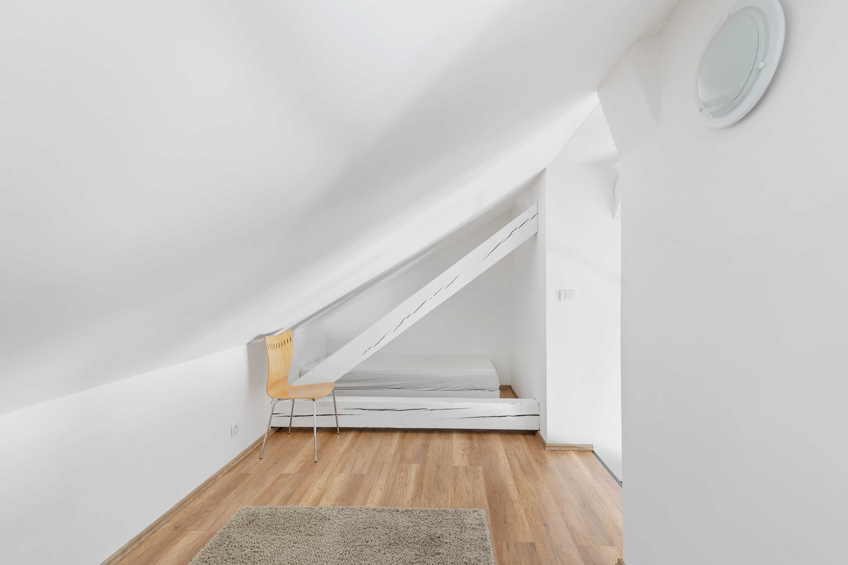 Upon entering the apartment, you will be welcomed by a hallway from which you can reach both rooms, a spacious dressing room and a bathroom with a bathtub. A separate toilet is a matter of course. The main room has a modern and appliance-filled fully equipped kitchenette where cooking will be a joy. Through the spacious dining and living area, which is equipped with basic furniture, you can take the stairs to the attic, which can be used for relaxation or as a working area. The bedroom has a large wardrobe and a double bed, and from here you reach the aforementioned beautiful and spacious terrace overlooking the peaceful surroundings. The apartment is tastefully decorated and decorated in natural shades, just pack your personal belongings and your favorite mattress and you are ready to live. The apartment also has a cellar which will provide additional storage space.