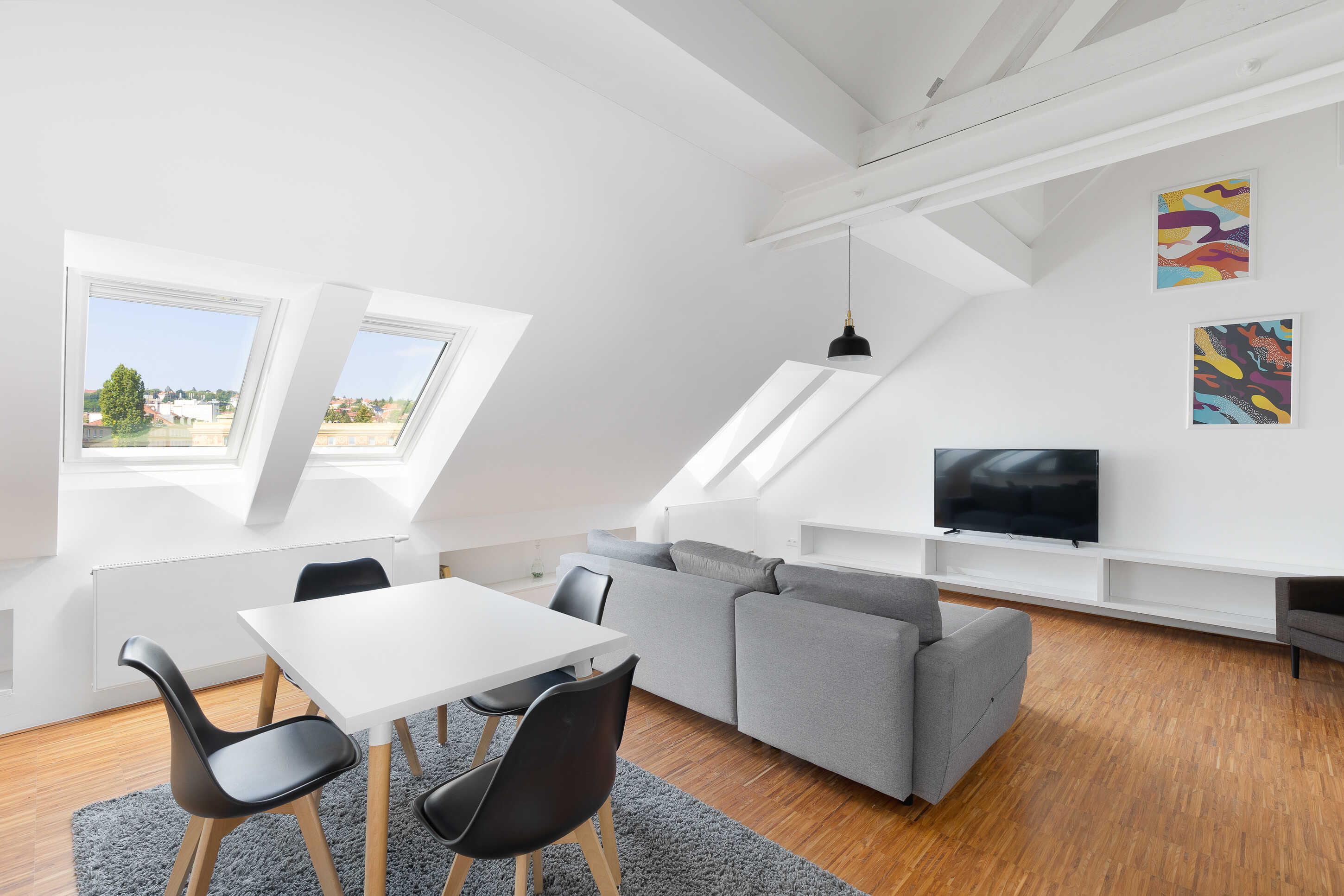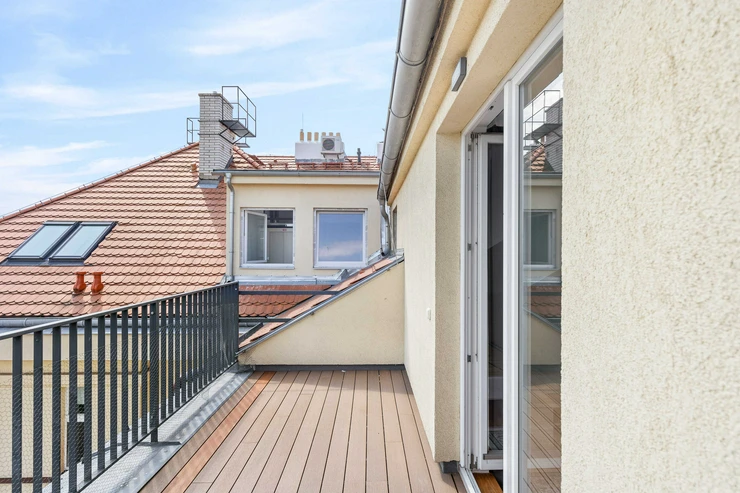 Is high standard, modern design housing on your radar? Then we have just for you this sunny and well-designed duplex apartment 2 + kk in an attractive and quiet location in Prague - Bubenč. It will delight you with its spacious sunny terrace and views of the rooftops of Dejvice.