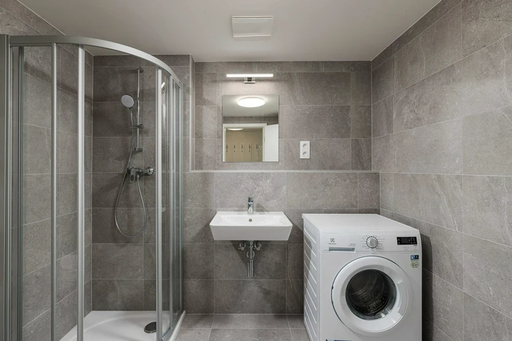 This unique development project will excite you not only because of its beautiful common areas secured by CCTV, glass elevator and supermarket on the ground floor, but also because of its great geographical location right on Kuban Square. The close proximity of the neighbourhood ensures you all the amenities. There are shops, restaurants, several sports facilities including the Slavia swimming pool, parks within walking distance and much more including the Eden shopping centre. Transport accessibility is provided by nearby tram and bus stops, there is also a train station nearby. Metro station A - Strasnicka is 3 minutes away by tram.