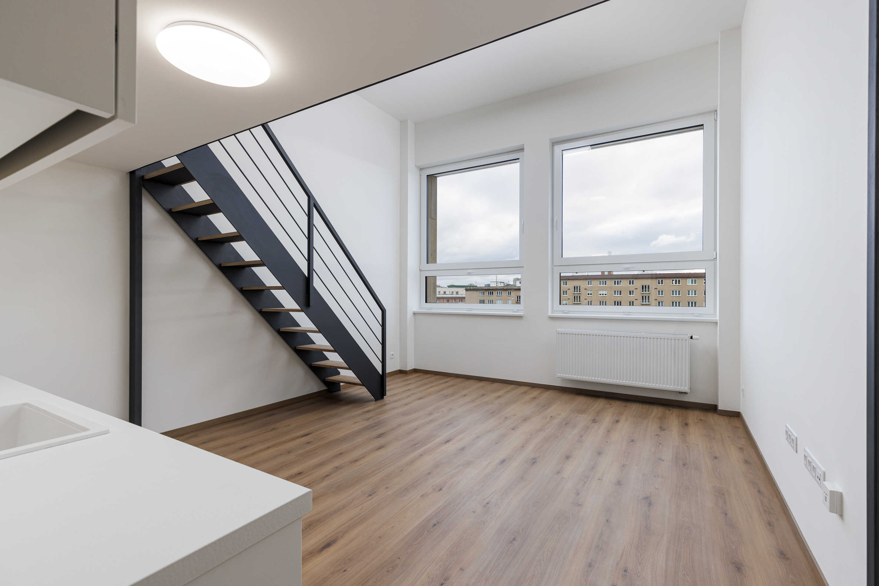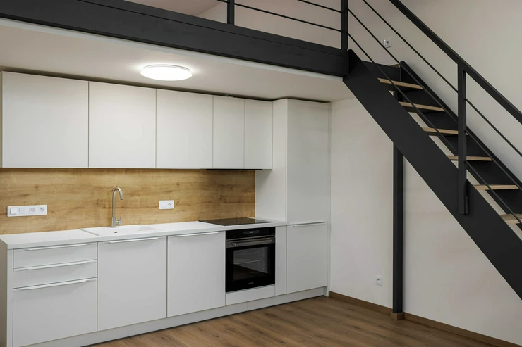 Looking for a unique modern loft apartment in the heart of Vršovice? Then this exceptional apartment in the new Moje Kubáň project is just for you. The apartment consists of a main area of 36 m2 and a large living floor with an area of 19 m2 and a height of 1.54m. The apartment is located on the fourth floor of this new building and offers a view directly on the square.