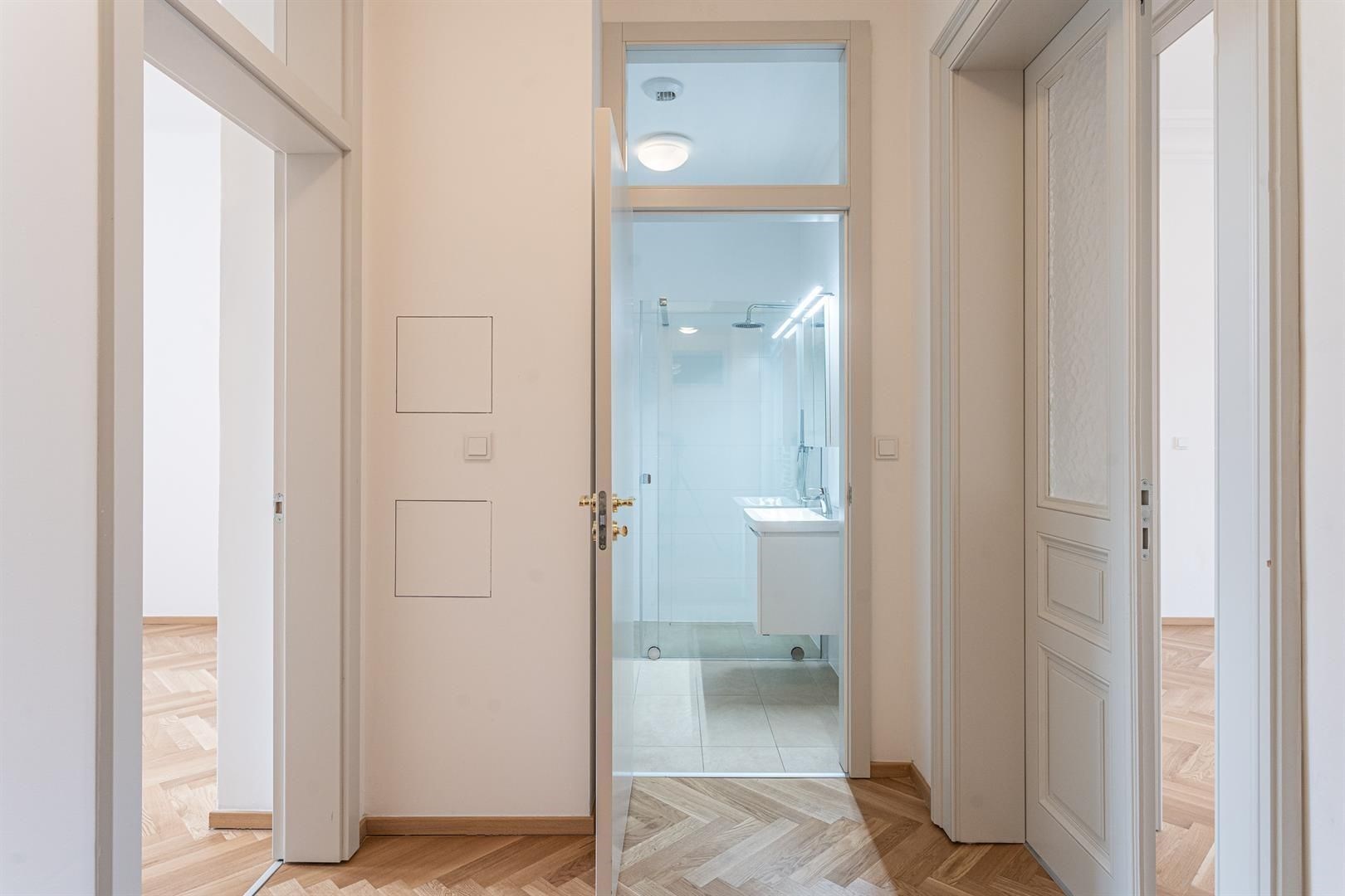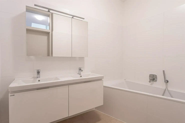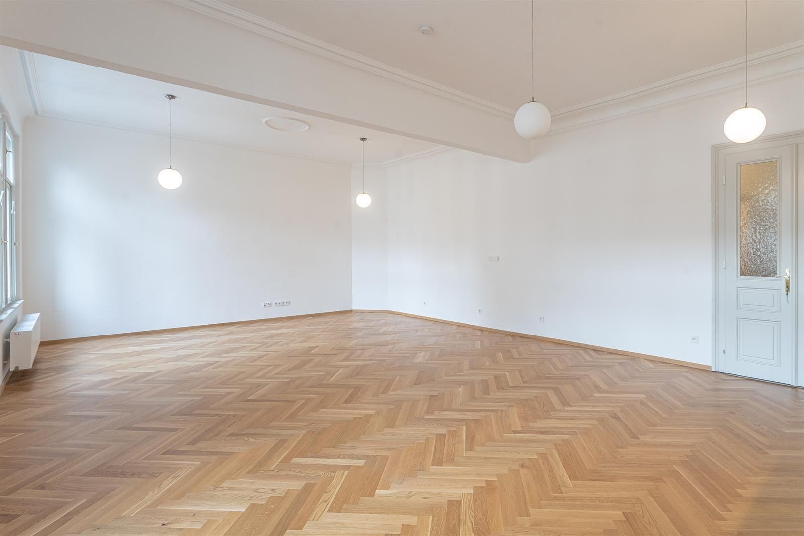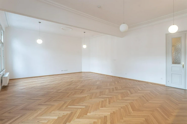 Spacious apartment 3+kk (2 bedrooms, 2 bathrooms), with a balcony and living area of 129.27 m2. The apartment is situated on the 4th floor above ground, of a renovated residential building with an elevator located in Prague 2 - Vinohrady, Balbínova Street. The interior of the apartment is unfurnished (furnishing options available for an increased rent by an agreement). The layout includes an entrance hall, a spacious, bright living room with a fully equipped kitchen including built-in appliances (fridge with freezer, hob, oven, dishwasher), 2 separate spacious bedrooms, and 2 bathrooms - one with a bathtub and toilet and the other with a shower and toilet. The apartment also has a utility room with a washing machine, and there is also a cellar (storage) available.