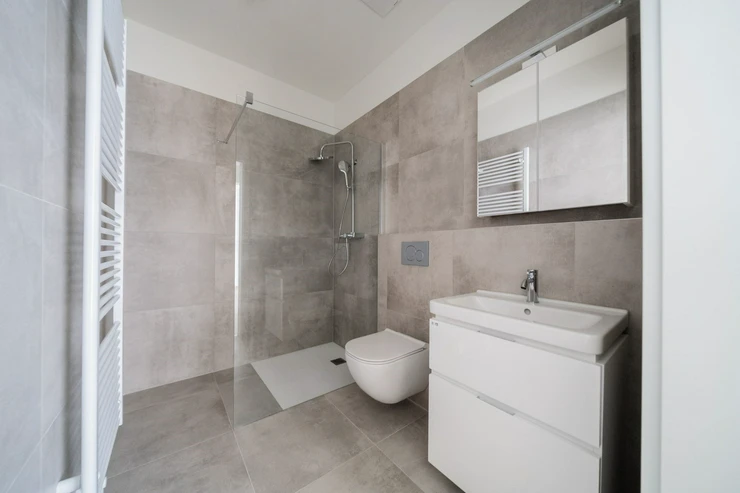 The interior of the apartment is partially furnished and offers a layout consisting of an entrance hall (7.98m2), airy bright living room (26.31m2) combined with a kitchen area featuring a new kitchen unit equipped with modern appliances (stove, oven, built-in refrigerator with freezer, and dishwasher). Additionally, the apartment offers two separate bedrooms (17.98m2; 17.05m2) and a modern bathroom (4.61m2) with a comfortable shower and toilet, another separate toilet, and a storage room (1.43m2). Flooring: vinyl in the rooms, ceramic tiles in the bathroom, toilet, and storage room. Possibility to equip the apartment with a washer/dryer. Floors: vinyl and ceramic tiles. Heating in the apartment: underfloor. The apartment has a cellar. There is also a bicycle and stroller storage room.