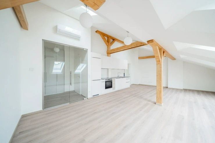 Attractive, air-conditioned attic apartment 2+kk (1 bedroom, 1 bathroom), renovated, with a total area of 79.32 m², is located on the 5th floor above ground with an elevator, in a building in a quiet inner block, which is situated in a sought-after location in Prague 1, on Wenceslas Square.