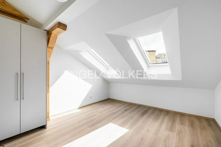A newly renovated attic apartment of 3+kt, situated on the 4th floor of a building with a lift, in a quiet courtyard directly on Wenceslas Square, is ready for long-term rent.