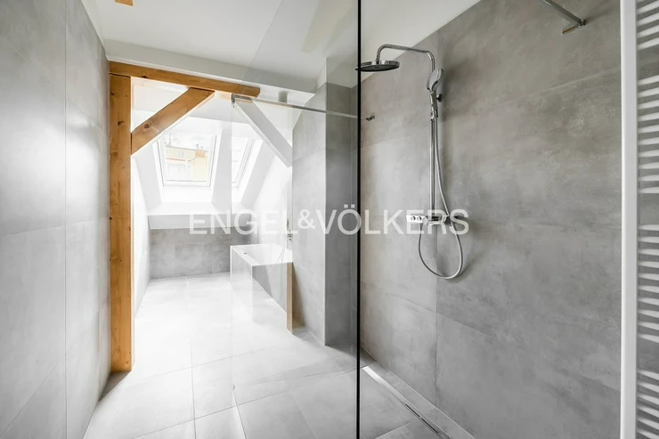 A newly renovated attic apartment of 3+kt, situated on the 4th floor of a building with a lift, in a quiet courtyard directly on Wenceslas Square, is ready for long-term rent.