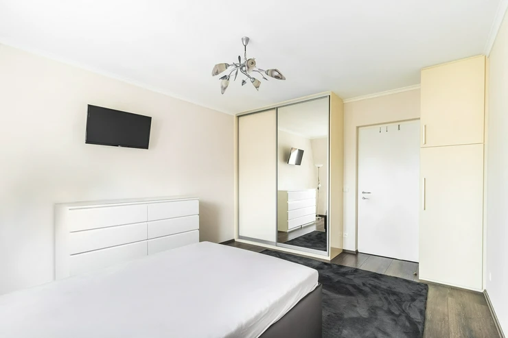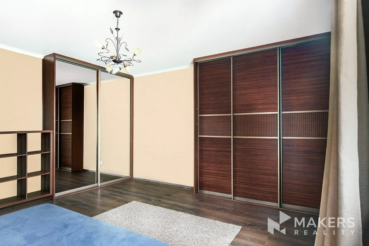 The apartment offers four separate bedrooms and a spacious living room with dining area and modern fully fitted kitchen (refrigerator with freezer, gas cooktop, electric and microwave ovens, dishwasher, extractor hood). Comfort is ensured by a private gas boiler.