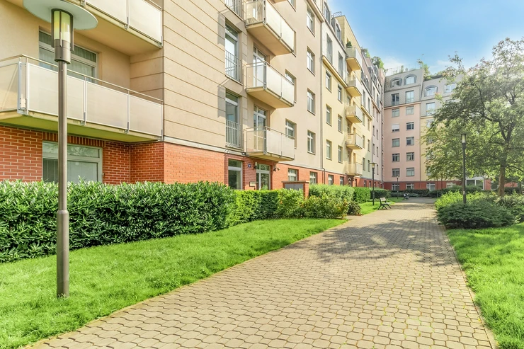 Residents of U Zvonařky enjoy outstanding amenities – a shared terrace with lounge chairs overlooking the park and a swimming pool available daily from 6:00 AM to 10:00 PM.
