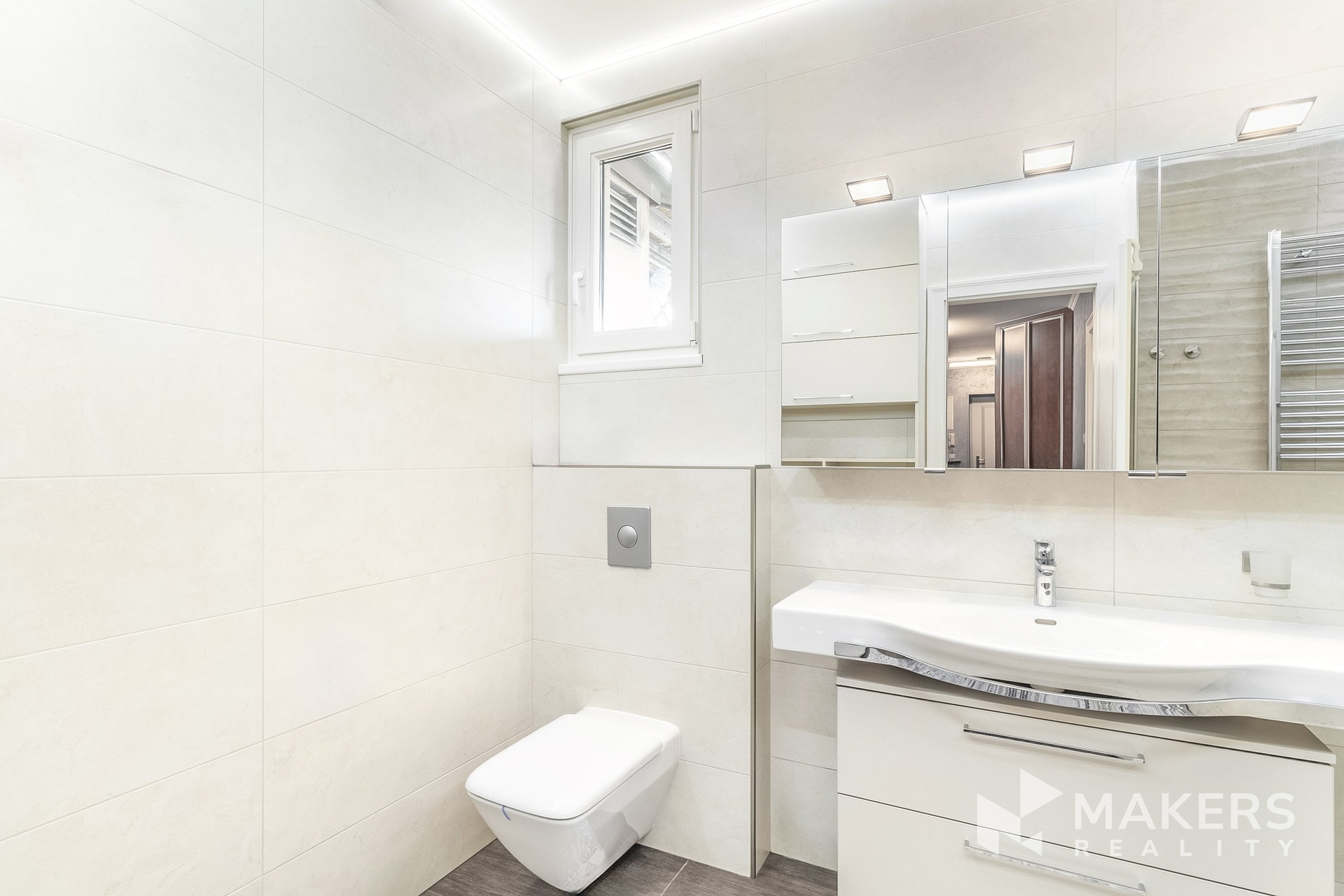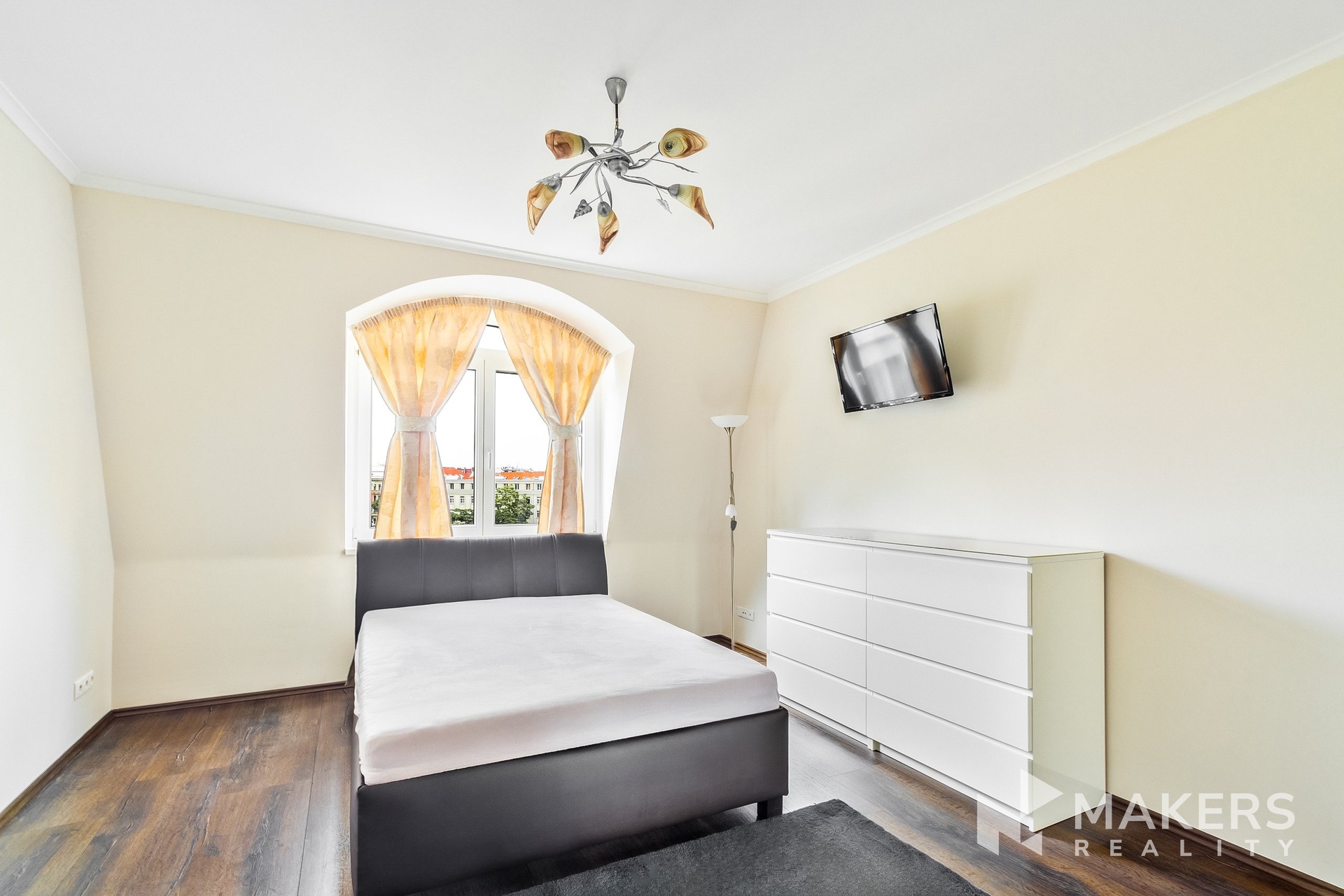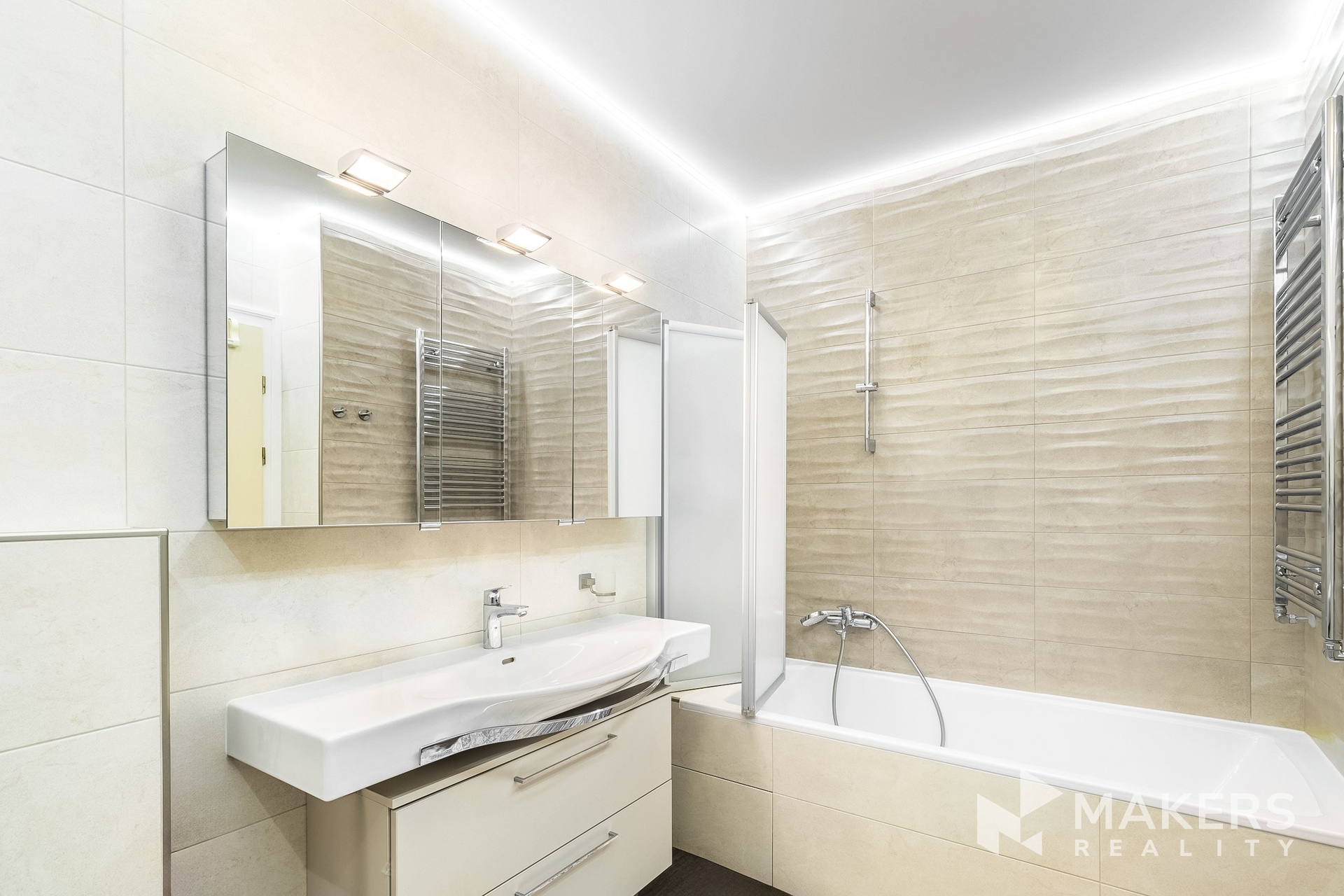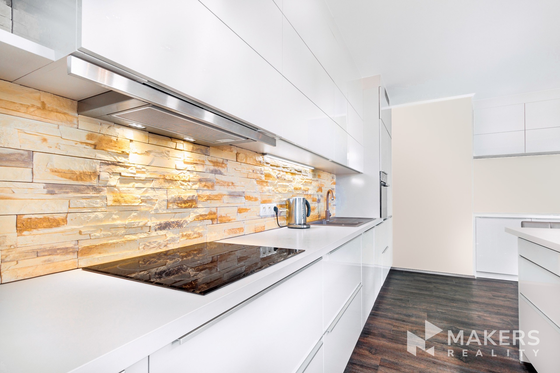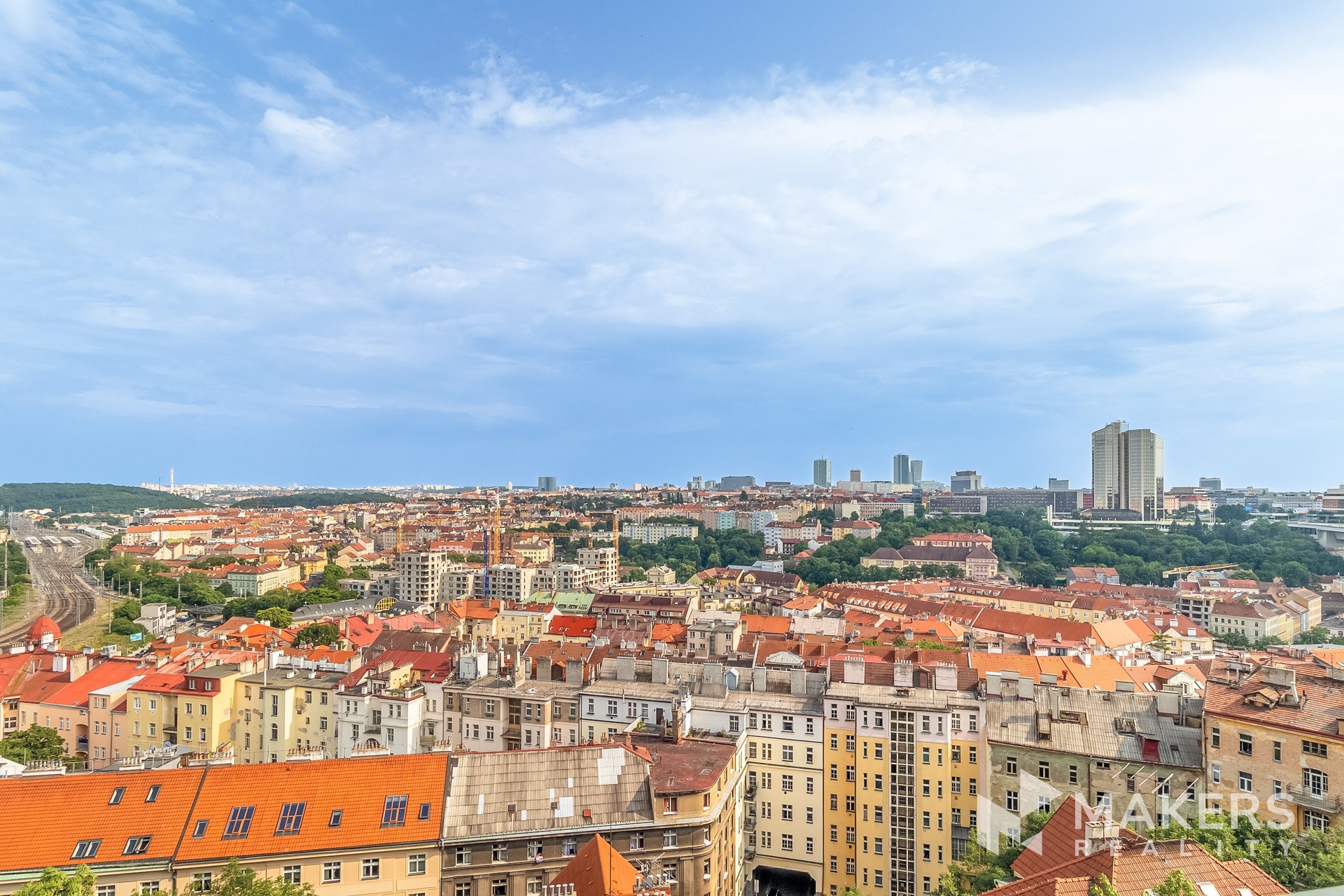We offer for rent a unique 4+kk apartment with a total area of 228 m² (usable area 154 m²) located on the 7th floor of the prestigious U Zvonařky residence. The highlight of this home is a 74 m² terrace offering breathtaking panoramic views over the picturesque Nusle Valley and surrounding Vršovice.