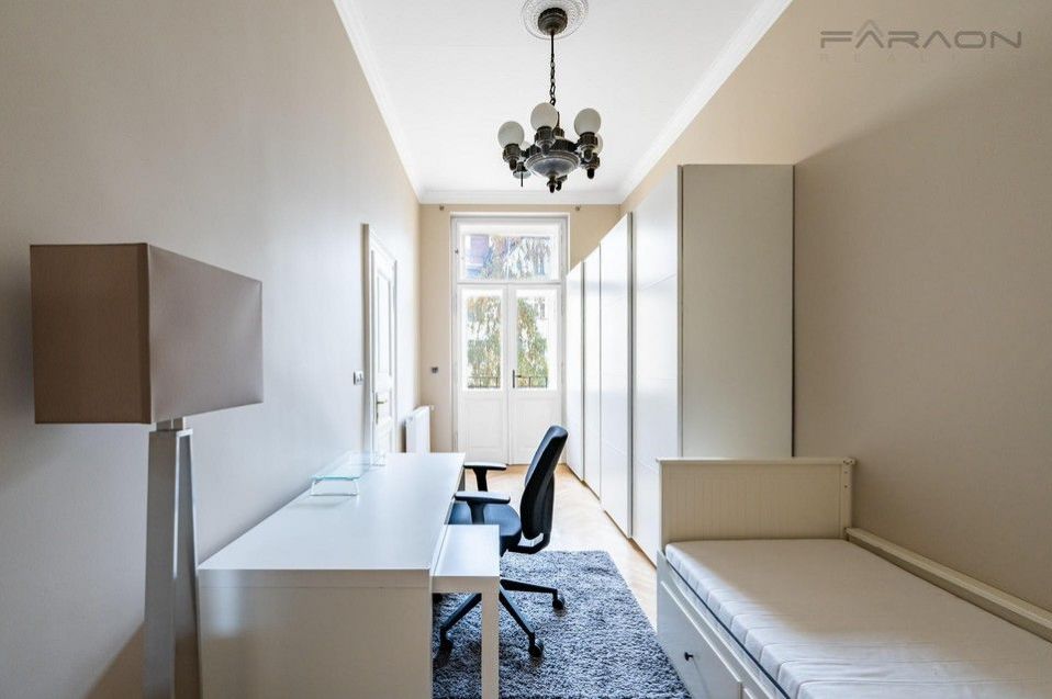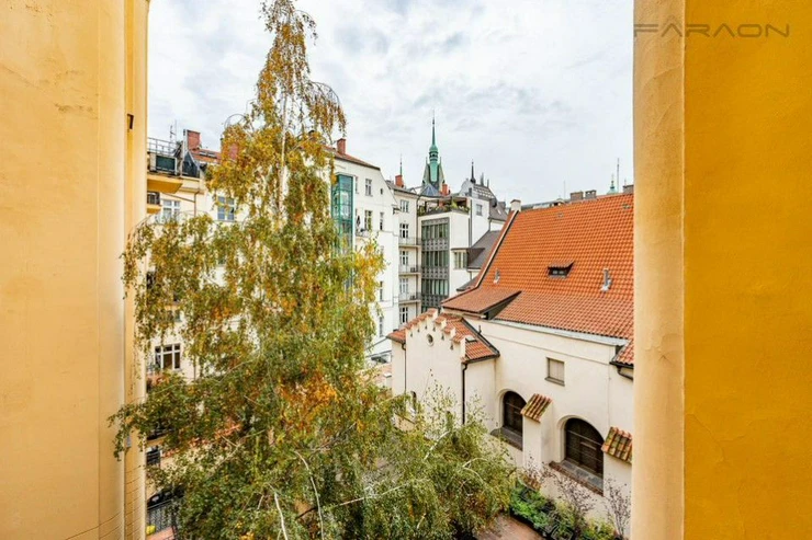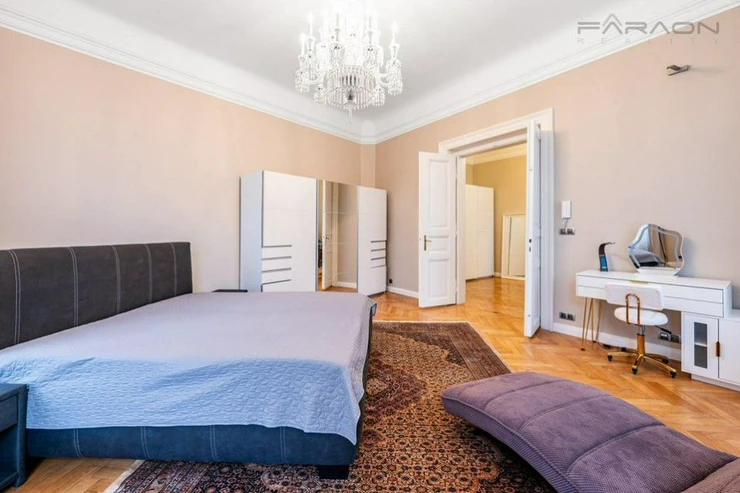 We offer for rent a furnished luxury apartment 4+1 135m2 in the historical center of Prague near the Old Town Square. The apartment with a living room, 2 bedrooms, a study and a fully equipped kitchen with quality Bauknecht appliances is located on the third floor of an Art Nouveau house. Both the house and the apartment itself have undergone a comprehensive renovation. The larger bedroom is decorated with unique bay windows and the living room has a fully functional tiled stove. Original designer lighting fixtures and solid parquet floors in all rooms.