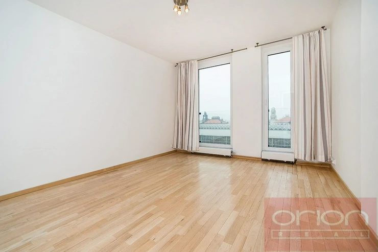 We offer for rent a luxurious air-conditioned two bedroom apartment with a balcony on the 2nd floor of a building with an elevator, which is part of the Riegrovy sady Residence with 24/7 reception and a shared well-maintained garden in the sought-after location of Prague 2 - Vinohrady. The unfurnished apartment has a total area of 116 sqm and offers an entrance hall, a spacious living room with a fully equipped kitchen and dining room with access to a balcony, 2 bedrooms, 2 bathrooms with a bathtub and a shower. The apartment is equipped with parquet and high-quality tiles, a washing machine and dryer, all kitchen appliances, an alarm. 1 parking space and a cellar are included in the rent. All civic amenities are nearby: restaurants, bistros, cafes, shops, medical facilities and other services. Very good transport accessibility by car and public transport, a few minutes walk to the Náměstí Míru metro station and Wenceslas Square, near the Main Train Station. By car, close access to the Prague Main Road and the connecting highway network. Good access to international schools and Václav Havel Airport. Opposite the Residence is the sought-after Riegrovy sady park.