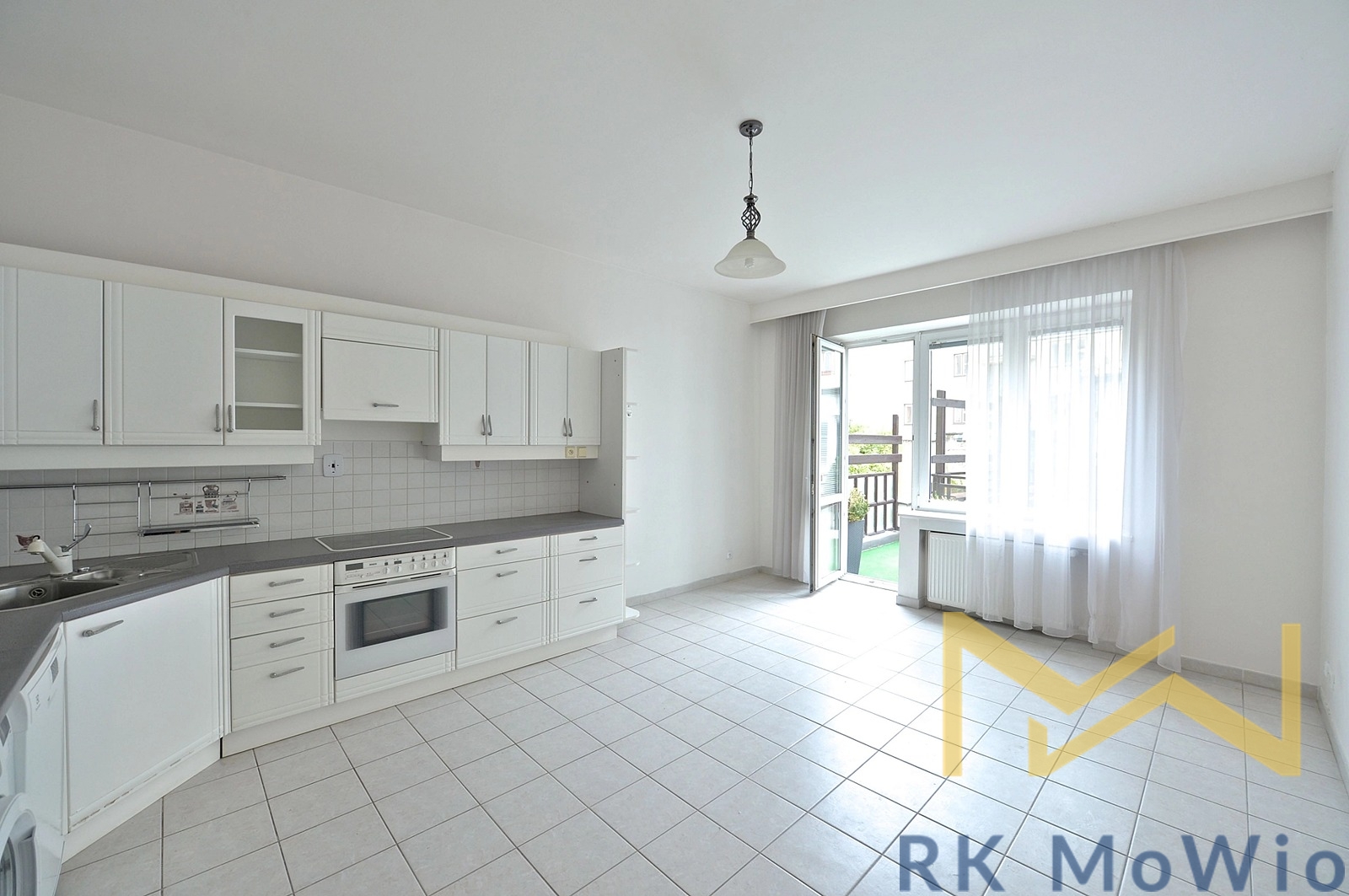 The apartment has an entrance hall, spacious living room, separate kitchen with dining area, 3 bedrooms, 2 bathrooms (1x with bath and two sinks, 1x with shower and sink), 2 separate toilets, balcony and terrace. Apartment equipment: kitchen including appliances; washing machine, wooden floors and tiles. Residents can use the fitness room. Photo is illustrative.