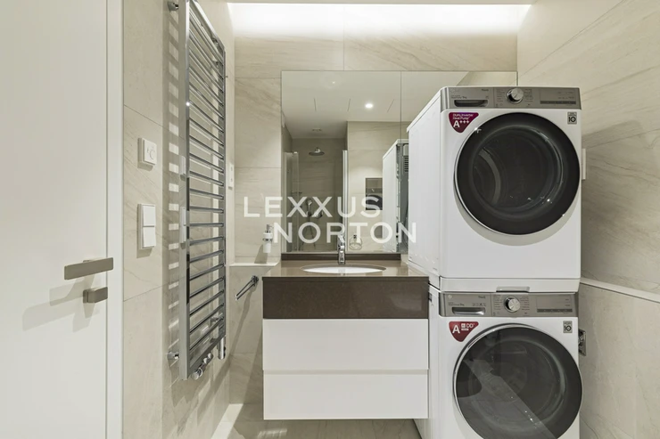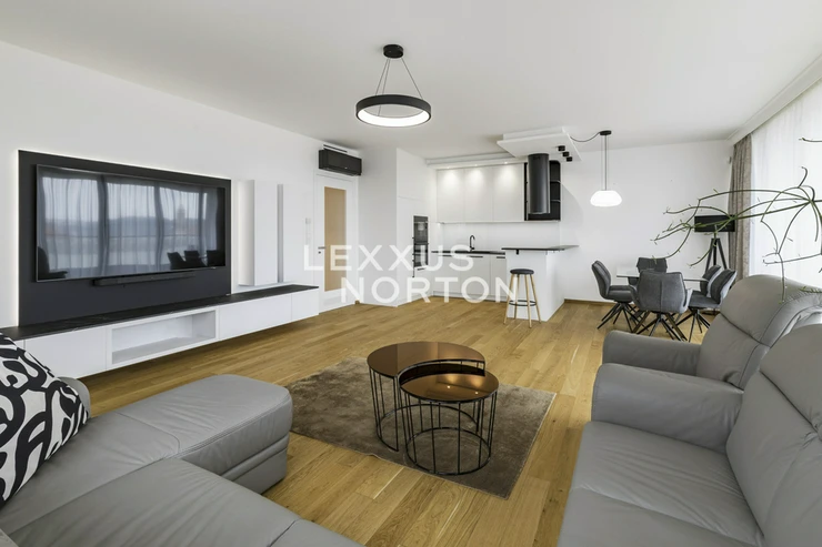 We offer for rent 2-bedroom apartment of 97 sqm with a loggia (15 sqm) situated on the 2nd floor of the new residential complex Residence Churchill with reception, 24/7 security and elevator. The surrounding area of the housing provides complete civic amenities and excellent transport infrastructure (bus stop Winston Churchill Square is located in front of the building).The layout includes an entrance hall, living room with access to a loggia, kitchenette, and dining area. The unit offers 2 bedrooms and 2 bathrooms. The apartment comes with garage parking and a cellar.The apartment is offered furnished and includes built-in kitchen appliances, a sofa set, a TV, a dining set, a bed, a desk, built-in wardrobes, a washing machine, a dryer, a security door, manually controlled heating, insulated windows, and air conditioning in every room.Vinohrady is one of the most desirable locations in Prague. They have a great location where everything you need can be found within 10 minutes walk. The area has excellent transport accessibility, the nearest metro station is Hlavni nadrazi, and there are several tram lines and buses in the vicinity of the residence. There are also good road connections. The motorway ring road can be reached in just 12 minutes by car and the Vaclav Havel Airport in 27 minutes. There are complete civic amenities in the vicinity of the house - pharmacy, clinic, post office, supermarkets, offices, banks, local shops, restaurants and bars. Nearby there are kindergartens, primary and secondary schools, a college and playgrounds. For leisure activities you can use Havlíčkovy sady and Riegrovy sady with beautiful views of Prague.The amount of billable monthly deposits is 15 000 CZK including energy.The inquiring client agrees to pay a commission of 1 month's rent plus VAT. If you cannot view the property in person, we also offer you a video tour from the comfort of your home in real time via Messenger, WhatsApp and other communication platforms.
