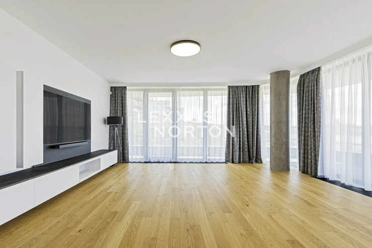 We offer for rent 2-bedroom apartment with a large loggia (36 sqm) of 116 sqm, situated on the 1st floor of the new residential complex Residence Churchill with a reception, 24/7 security and elevator. The surrounding area provides complete civic amenities and excellent transport infrastructure (the bus stop Náměstí Winstona Churchilla is located in front of the building).The layout includes an entrance hall, living room with kitchenette and dining area. The unit offers 2 bedrooms with access to an adjacent loggia and 2 bathrooms. The apartment is offered unfurnished and its amenities include built-in kitchen appliances, a dining set, security doors, manually controlled heating, insulated windows, and air conditioning in every room. Vinohrady is one of the most desirable locations in Prague. They have a great location where everything you need can be found within 10 minutes walk. The area has excellent transport accessibility, the nearest metro station is Hlavni nadrazi, and there are several tram lines and buses in the vicinity of the residence. There are also good road connections. The motorway ring road can be reached in just 12 minutes by car and the Vaclav Havel Airport in 27 minutes. There are complete civic amenities in the vicinity of the house - pharmacy, clinic, post office, supermarkets, offices, banks, local shops, restaurants and bars. Nearby there are kindergartens, primary and secondary schools, a college and playgrounds. For leisure activities you can use Havlickovy and Riegrovy sady with a beautiful views of Prague.The amount of billable monthly advances is 10 000 CZK + electricity and gas. The inquiring client agrees to pay a commission of 1 month's rent plus VAT. If you are unable to view the property in person, we also offer you a video tour from the comfort of your home in real time via Messenger, WhatsApp and other communication platforms.
