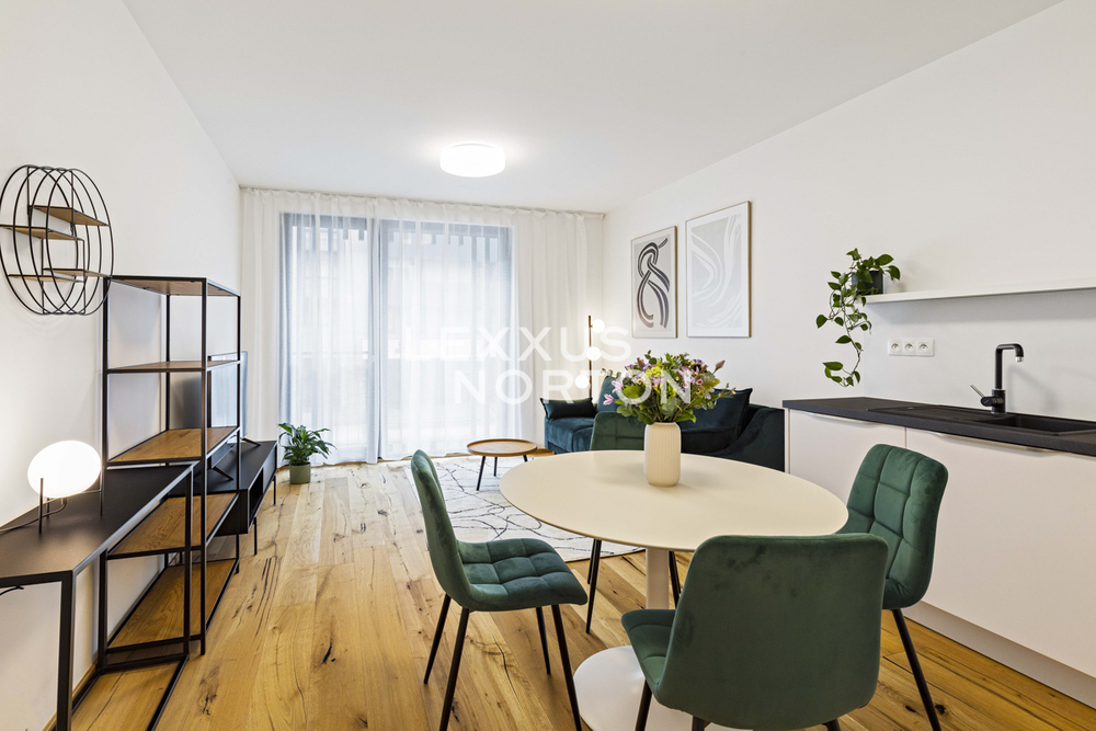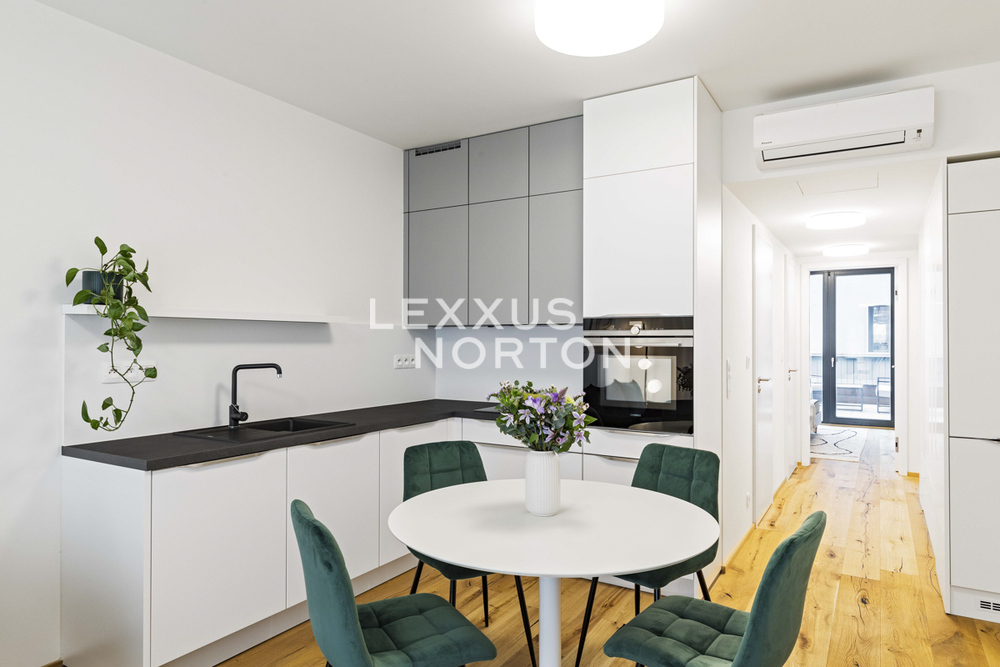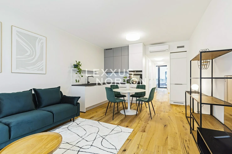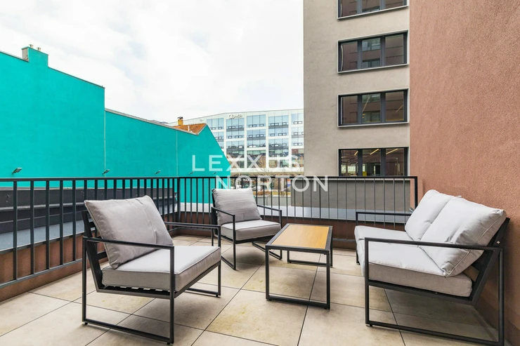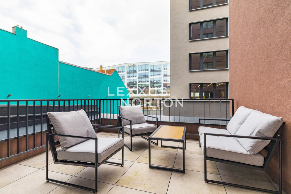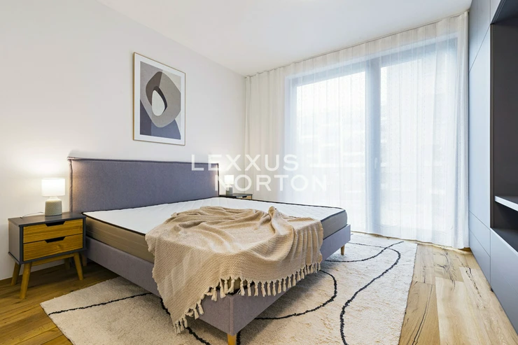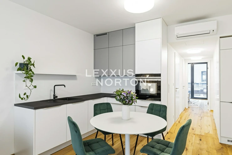 We offer a brand new elegant apartment for rent of 52 sqm with terrace (9 sqm), situated on the 1st floor of the residential project Iconik with elevator. The property is located in a beautiful area of Prague 8 - Karlin with all civic amenities and good transport infrastructure.This new furnished 1-bedroom apartment offers an entrance hall, a spacious living room with a fully equipped kitchenette, a bedroom with a built-in wardrobe, a bathroom, and a separate toilet. The bedroom opens onto a terrace overlooking the courtyard. The apartment includes a cellar and a garage parking space with a car lift for a fee. There is a common area for washing bikes and sitting in the courtyard. The apartment is equipped with an elevator and Loxone smart home technology. The hallway and bedroom have built-in wardrobes, and the bathroom has a shower. The entire apartment has wooden floors with underfloor heating. Air conditioning and electrically controlled outdoor blinds are also available.Very desirable location in the neighbourhood of the centre of Prague combining new and older apartment buildings, which has excellent transport accessibility. Within walking distance are tram stops and metro station Krizikova. By car, you can reach the city ring road in 7 minutes, Vaclav Havel Airport in 28 minutes, and the Palladium entertainment and shopping centre in just 6 minutes. In the vicinity you will find all civic amenities - kindergartens, primary and secondary schools, gymnasium, pharmacies, polyclinic, restaurants, supermarkets, playgrounds, post office... For leisure activities you can use the bike path, golf course or the hall of Sokol Karlin. You can go for a walk to the parks Pred Invalidovnou, Vrch Vitkov, Karlinske namesti, Kaizlovy sady or Rohansky ostrov. The inquiring client agrees to pay a commission of 1 month's rent plus VAT. If you are unable to view the property in person, we also offer you a video tour from the comfort of your home in real time via Messenger, WhatsApp and other communication platforms.
