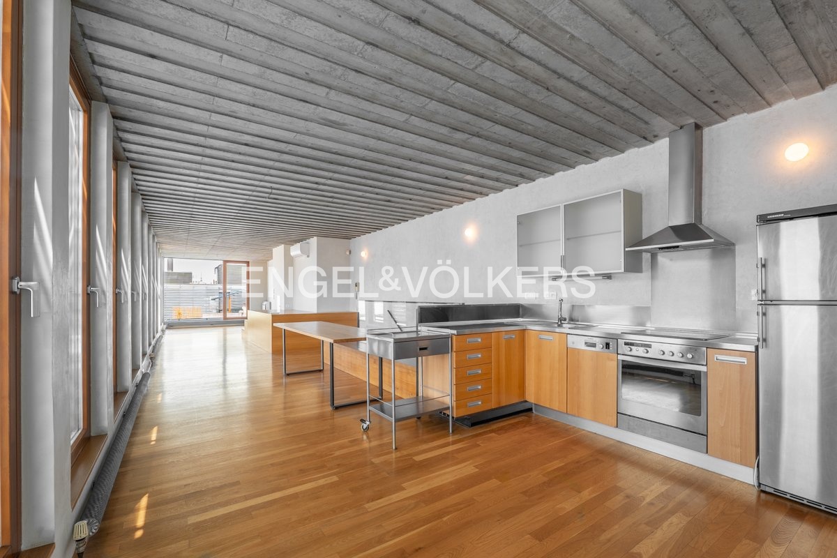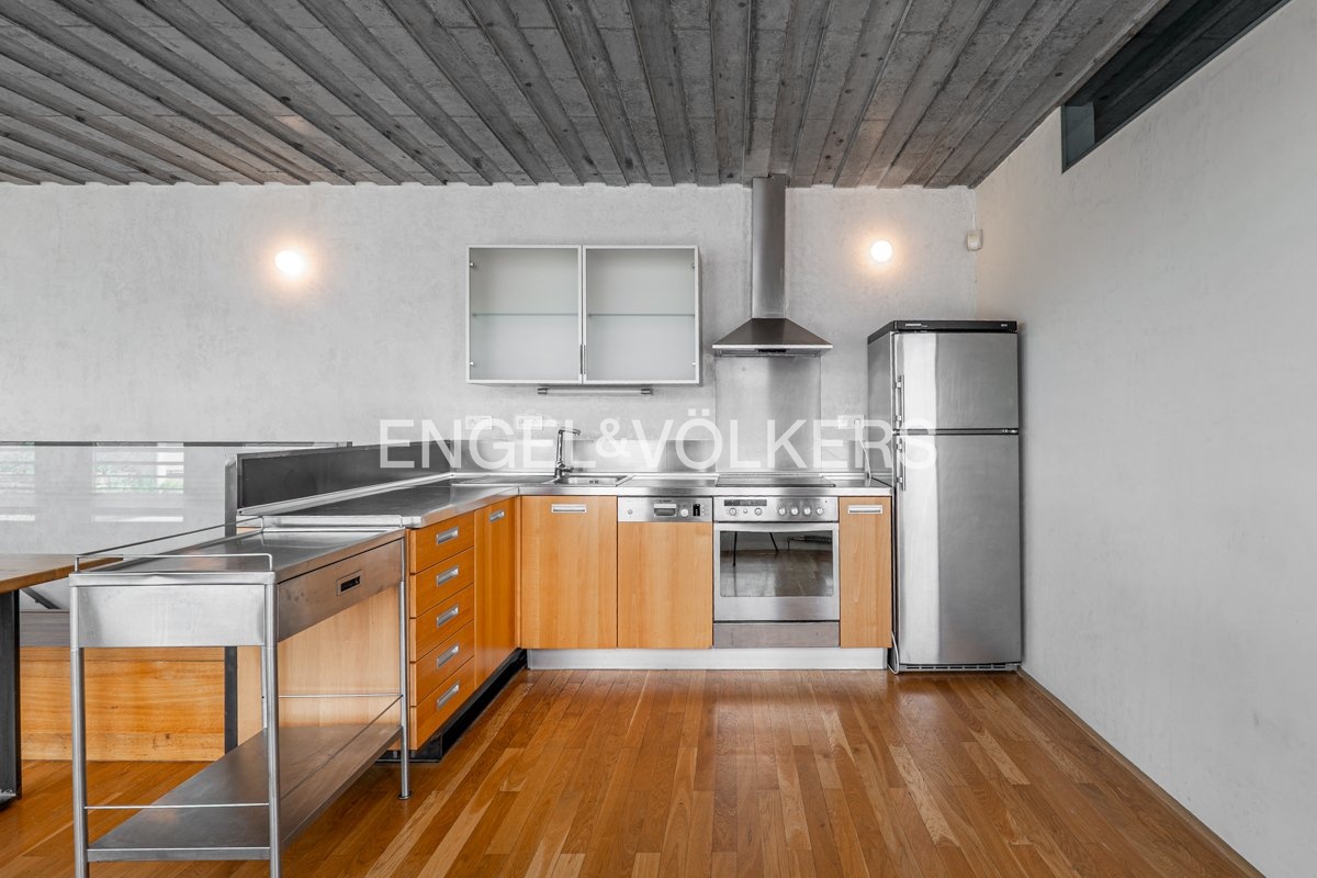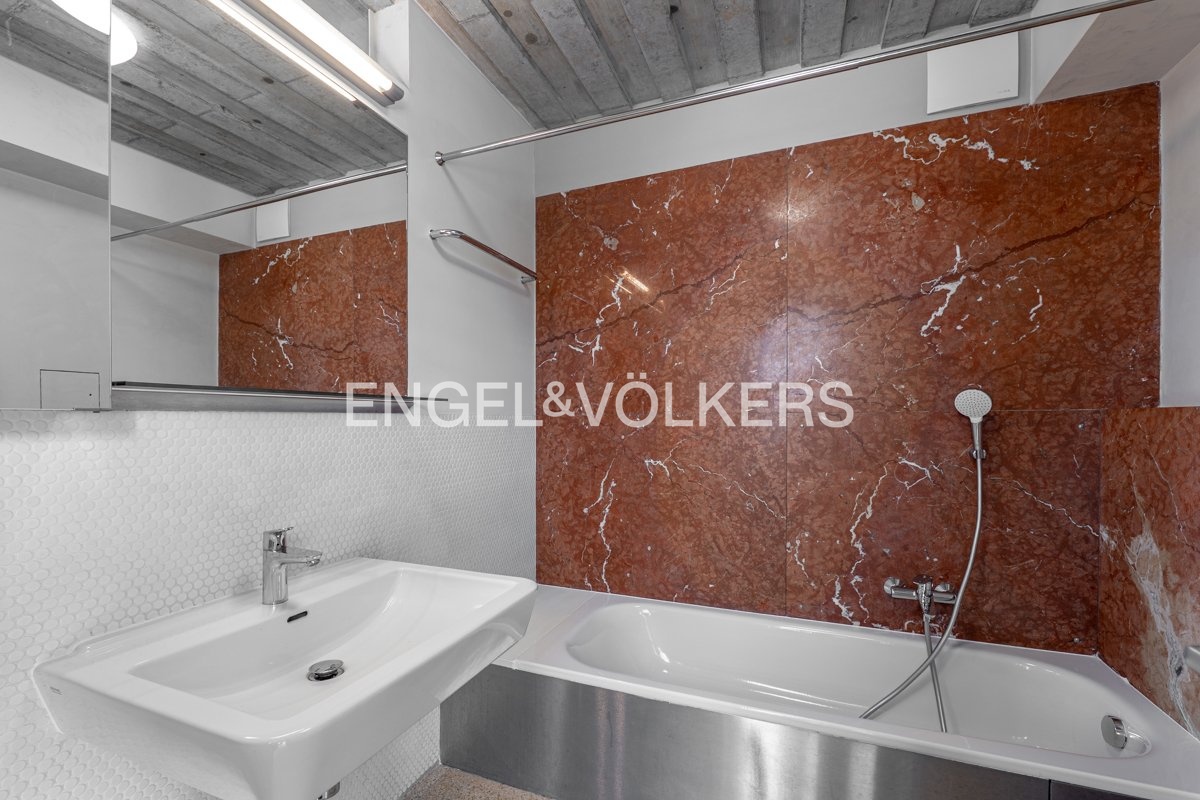 The apartment with a popular 2+kt layout on the top floor of the building offers an entrance hall, an airy living area with a fully equipped kitchenette, and a bright bedroom. The bathroom is designed in a combination of marble and Venetian stucco, equipped with a bathtub, sink, and toilet. A bonus is the outdoor space in the form of two terraces. Light enters the apartment through soundproof windows with copper blinds that characterise the entire project. The profiled exposed concrete contrasts beautifully with the solid oak flooring. The apartment, located on the fifth and sixth floor, is accessible by elevator, which is located at the reception desk that guards the building 24/7.