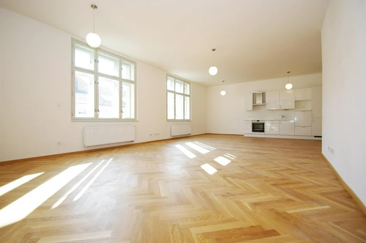 The spacious 2+kk apartment with a total area of 100.95 m2 is located on the 5th floor of a renovated building with an elevator, in the popular residential area of Prague 2 - Vinohrady, Balbínova Street.