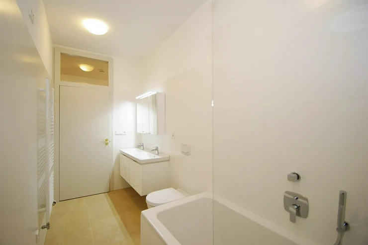 The spacious apartment 3+kk with a total area of 100.95 m2 is situated on the 5th floor of a renovated building with an elevator, in the popular residential area in Prague 2 - Vinohrady, Balbínova Street. The interior of the apartment is unfurnished and layout-wise offers an entrance hall, a living area with a kitchenette equipped with built-in appliances (refrigerator with freezer, electric hob, oven, dishwasher), two rooms, a bathroom with a bathtub and a toilet. There is also a storage room in the apartment. The apartment comes with a cellar.
